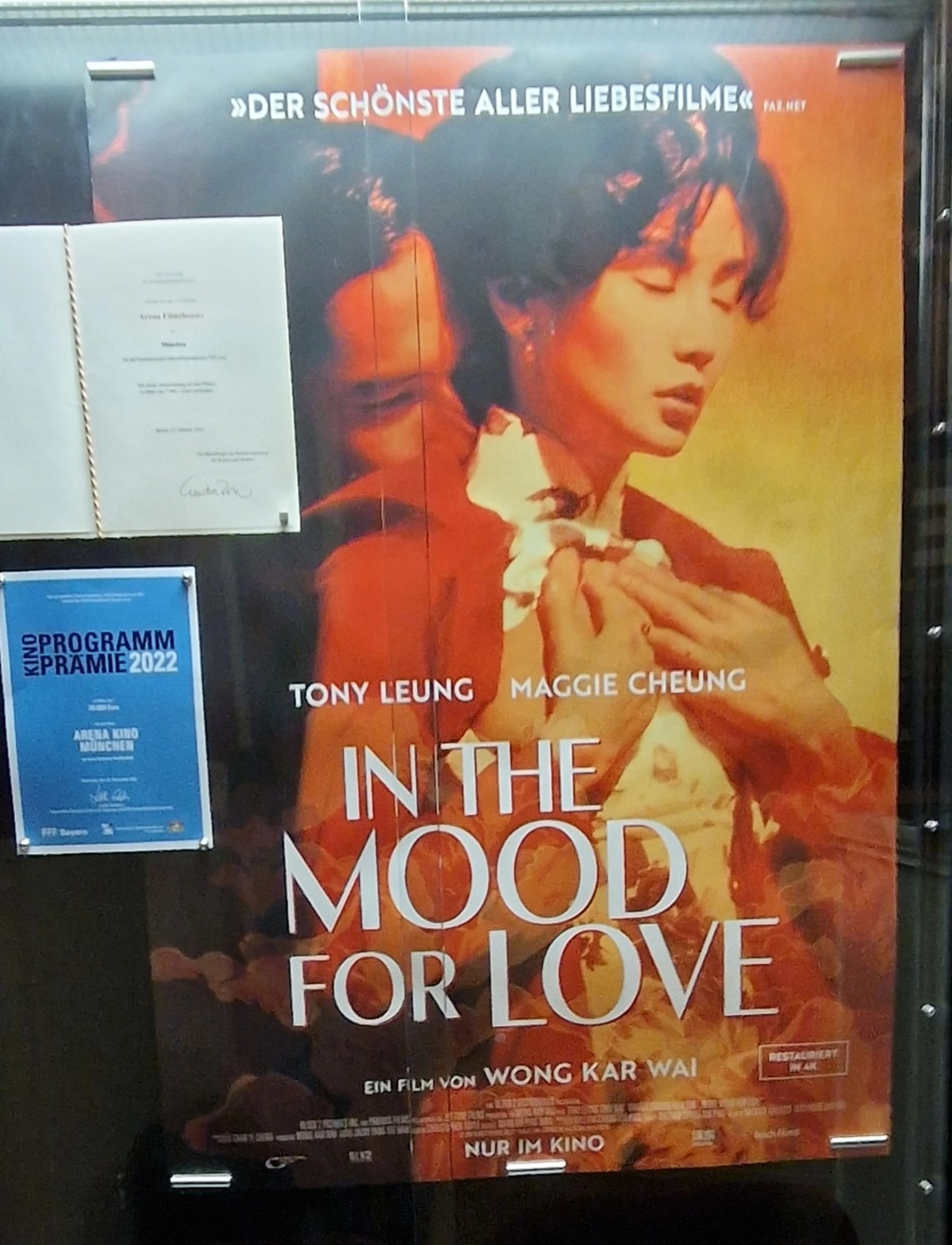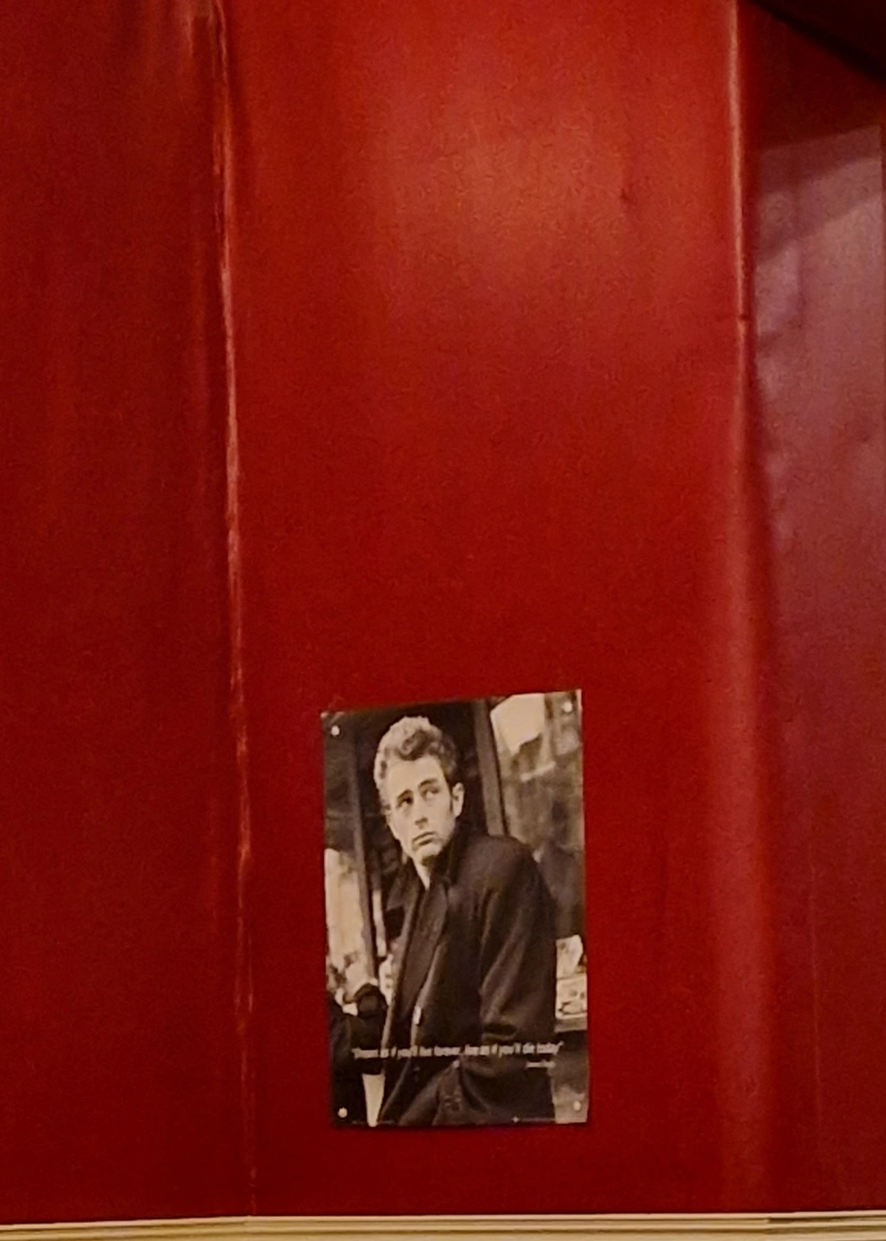 영화관 로비의 오래된 영화 포스터는 <화양연화>. "사랑을 다룬 영화 중 가장 아름다운"이라는 수식어가 포스터 맨 위를 장식하고 있다. 오른쪽은 로비 벽에 붙은 영원한 제임스 딘.