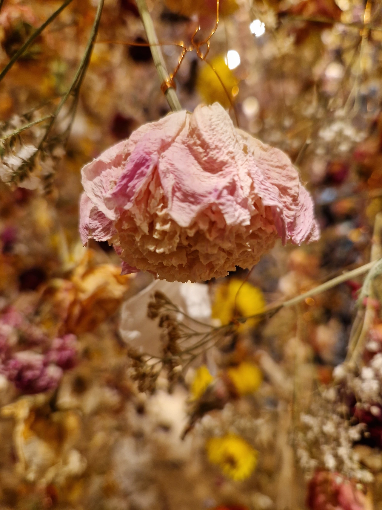결정적으로 베아테와 친해진 건 아이들이 4학년 때다. 코로나 이전이어서 아이들이 이쪽저쪽 서로의 집을 방문하며 파자마 파티도 자주 했다. 슈바빙 지역에 사는 카타리나 가족이 우리 동네로 와서 이태리 레스토랑에서 즐거운 식사를 한 적도 있다. 그때 베아테가 유쾌하고 코믹할 소지가 다분한 캐릭터라는 걸 알았다. 그 집은 아빠만 빼고 나머지 셋이 말을 해도 너무 잘한다. 아이들이 다른 김나지움을 간 이후로 코로나가 터졌고 자주 만나지 못했다. 아이들은 주 1회 전화 통화를 시작했고, 주로 카타리나가 먼저 전화를 했다. 돌아보면 그때 베아테가 투병 중이라 어린 마음에 힘들지 않았나 싶다. 그 후 내가 암투병을 하고, 베아테가 나보다 먼저 암에 걸렸다는 것을 나중에 들었다.이번 부활절 방학 때는 베아테가 먼저 연락해서 나와 아이를 꽃 전시회에 초대했다. 꽃을 테마로 한 전시회였는데 클라이맥스는 역시 마지막. 마른 꽃들이 꽃비처럼 쏟아지는 착각을 불러일으키는 환상적인 공간이었다. 저런 창의적인 아이디어는 어디서 나오지, 계속 감탄하며 보고 또 보았다.