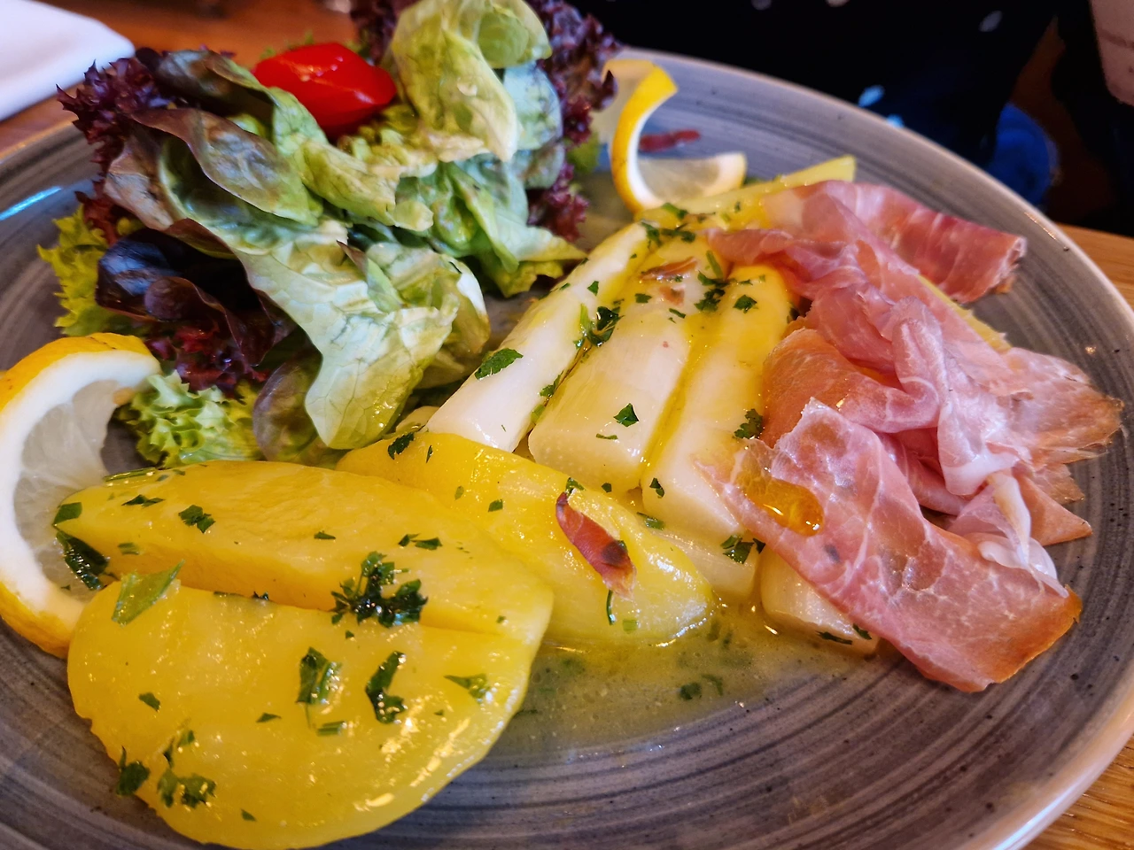 율리아나 가족과 우리 동네 이태리 레스토랑 산타마리아에서 저녁. 올해 첫 아스파라거스, 슈파겔 Spagel은 이사벨라가 주문함. 나도 저걸 시켰어야.. 왜냐고? 맛있어 보여서!