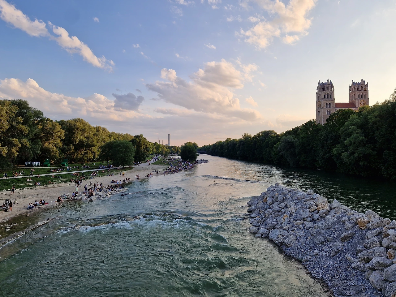 2023. 7월말 저녁 무렵 뮌헨의 이자르 강.