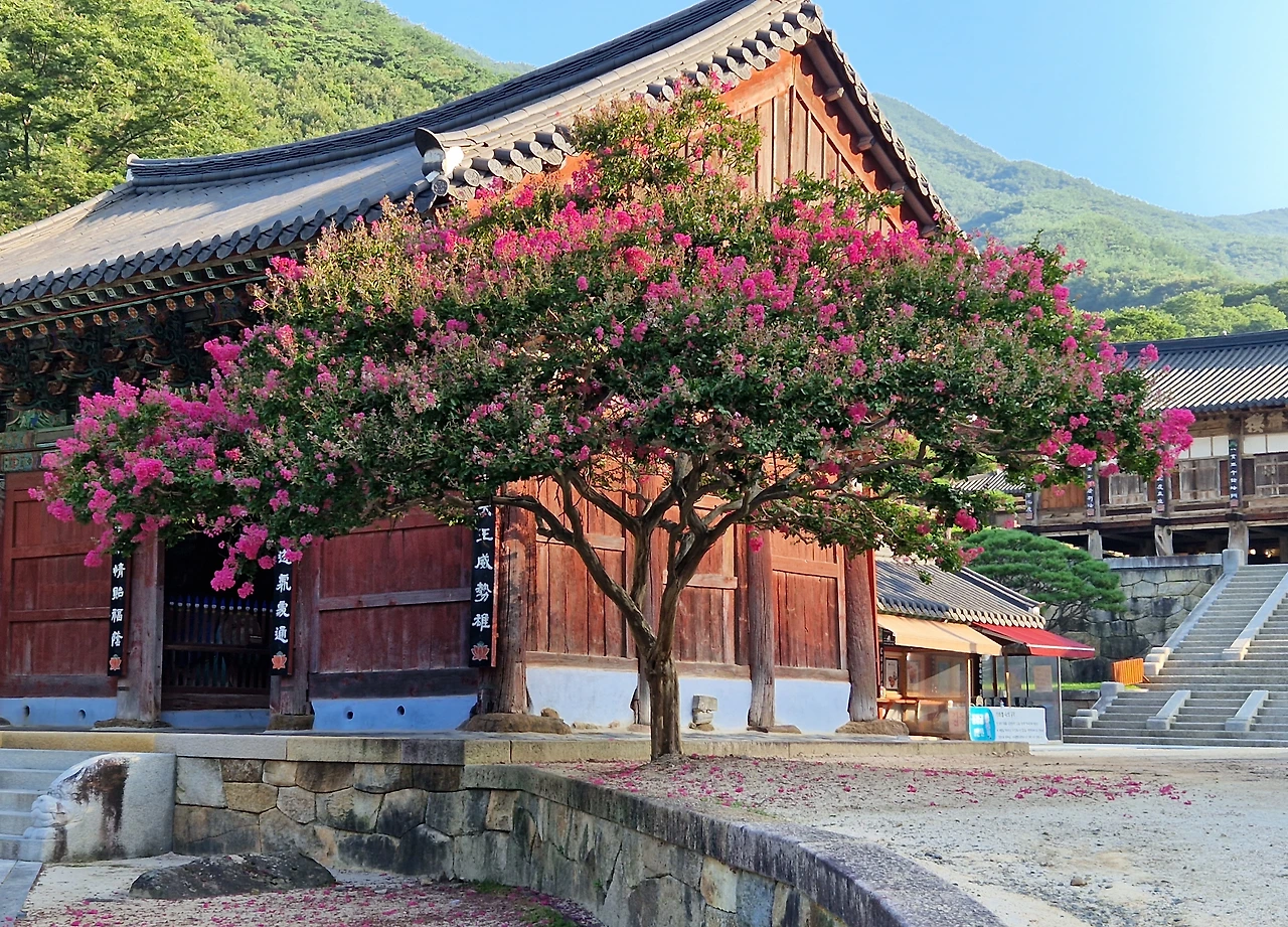 2023.8.18 화엄사 배롱나무. 떨어진 꽃잎마저 아름다웠다.