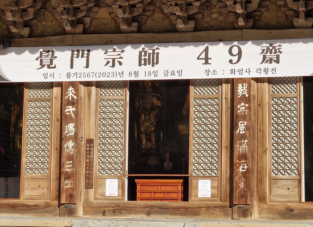 각문 스님의 49재 중 막재가 열린 화엄사 각황전.