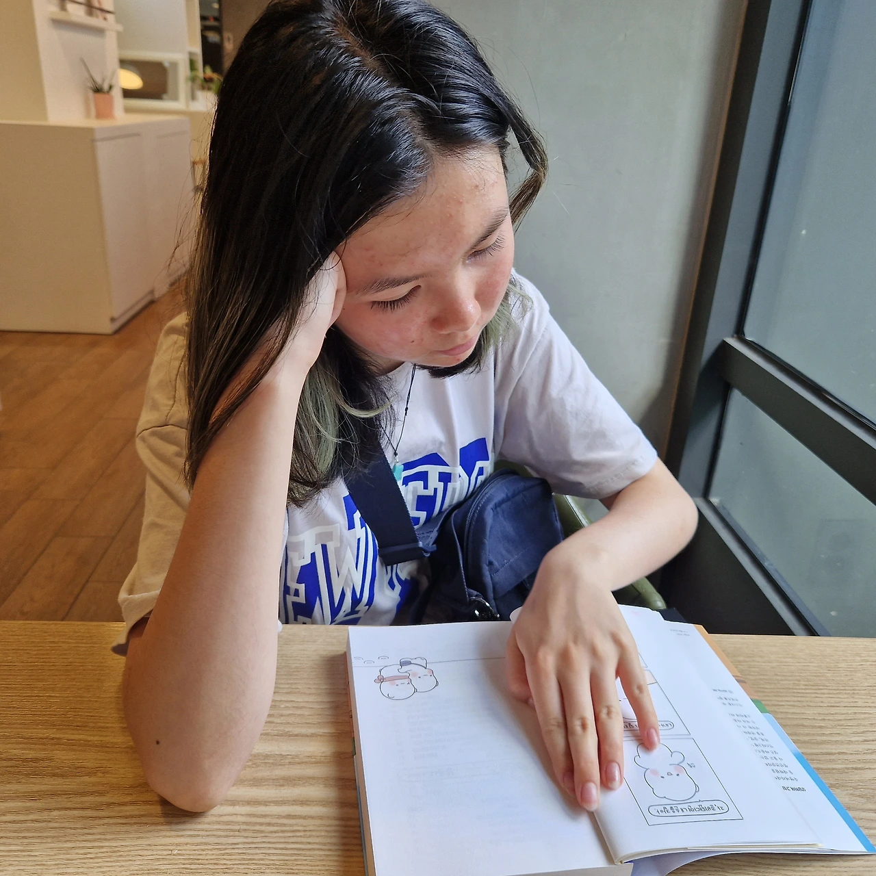 아이는 한글책을 읽기 전에 자기가 원하는 한글책을 사겠다고 이모부와 교보문고에 가서 책을 두 권 직접 골라왔다(라틴어 공부 전에는 또 노트를 사러 가시고. 옛날에 우리도 많이 하던 루틴, 공부하기 전 의식 아닌가!). 한 권은 글만 있고, 한 권은 한 페이지에 세 칸짜리 카툰이 있었다. 쉽게 말하자면 만화 에세이. 나는 안다. 우리 아이의 한국어 수준은 뮌헨의 주말 한글학교에서도 꽤 높은 편이다. 읽고 쓰고 말하고 듣기가 골고루 유창한 편이다. 아이의 한국어 실력을 가늠하려고 주기적으로 K드라마도 같이 보는데 나쁘지 않다. 내 생각에 가장 어려운 건 한자어. 당연하지. 한국어의 어휘는 절반 이상이 한자어로 이루어져 있다. 한자를 모르고서는 풍부한 표현과 완전한 독해가 어렵다. 비속어나 신생어 등도 어렵기는 마찬가지.