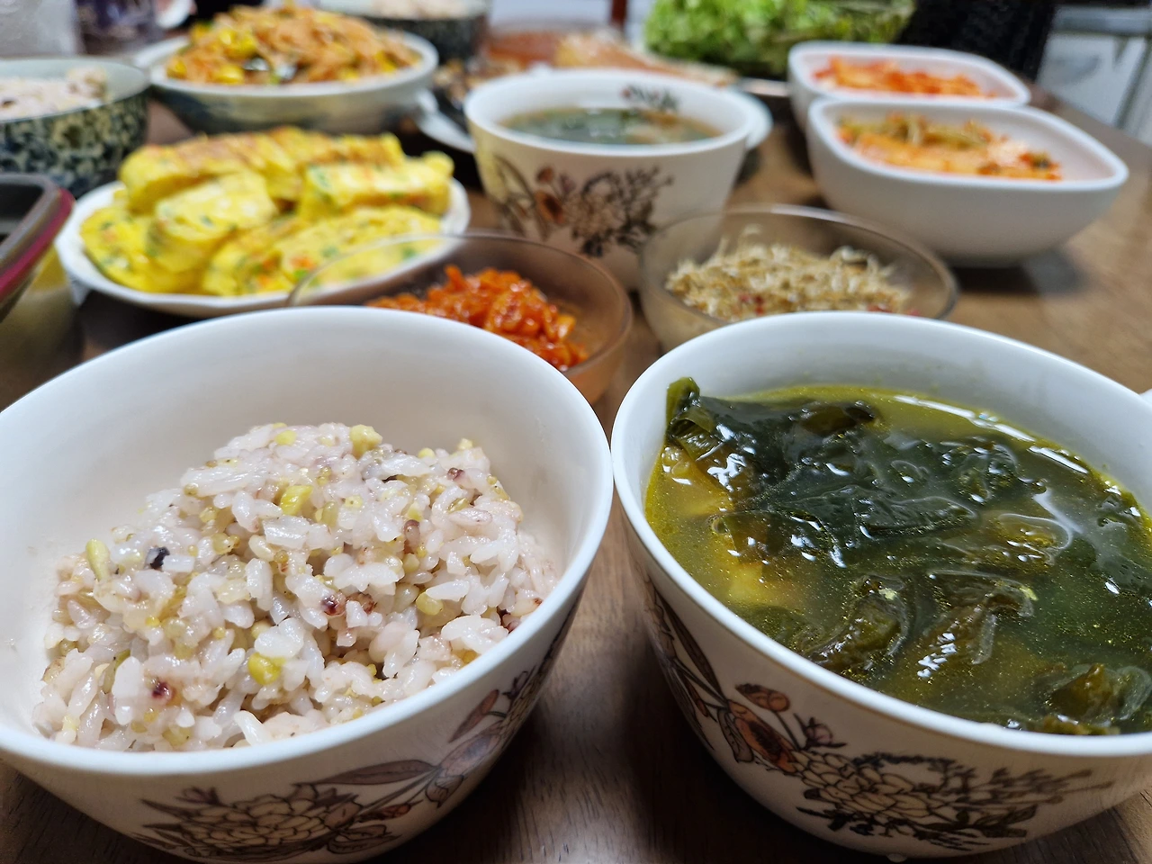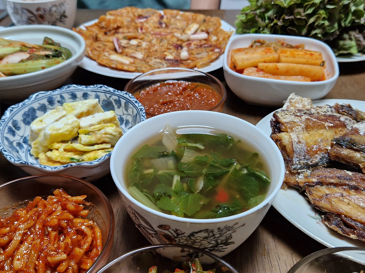 짐은 언니집에 풀었다. 샤워를 하고 옷을 갈아입자 살 것 같았다. 한국은 에어컨이 있잖나. 독일은 가정에도 가게에도 에어컨은커녕 선풍기도 찾기 힘들다. 엄마한테 주문한 건 갈치구이였다. 독일에서 가장 먹고 싶었던 건 엄마의 생선구이(아이는 할머니밥보다 알밥이 먼저!). 얼마나 맛있게 먹었는지 사진 찍는 것도 잊었다. 먹고 나자 생각이났다. 첫 귀국 밥상을 안 찍다니. 사진은 엄마가 다른 날 차려주신 고등어와 갈치 모둠구이로 대체했다. 아이의 최애 할머니표 메뉴는 할머니의 잔멸치와 오징어 진미채 그리고 계란찜과 계란말이. 두부 듬뿍 넣은 된장과 뽀얀 미역국과 내가 좋아하는 콩나물도 빠질 수 없다. 태풍 '카눈' 영향으로 서울에 비가 오던 날은 할머니표 김치전과 부추전도 먹었다.엄마는 매일 그 나물에 그 밥이라 미안하다 하시지만 이런 집밥을 나는 매일 먹고 싶다.