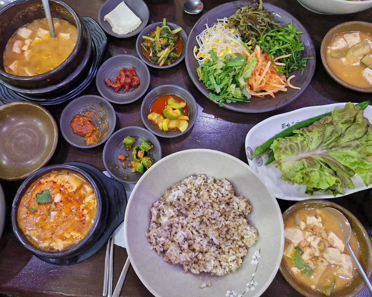 한국에 와서 어이없는 사고로 생사의 기로에 서야 했던 2년 전 봄날도 생각난다. 그땐 이 카페에서 뜨거운 아메리카노와 포도알이 몇 개 든 뮤슬리 요거트를 자주 먹었지. 먹어도 먹어도 질리지 않던 그 맛. 다시 먹으니 그때 먹던 맛이 아니었다. 그땐 또 매일같이 점심으로 샤부샤부를 먹었다. 그걸 먹고 기운을 내서 다시 공원을 걸었다. 매일 먹기엔 싼 가격이 아니었는데 살아서 나를 보는 게 마지막인 줄 알고 많은 이들이 찾아와 먹고 힘내라고 샤부샤부를 사주었다. 그들 덕분에 살아서 독일로 갔고, 또 살아서 2년 만에 한국에 왔다. 어찌 감회가 새롭지 않으랴. 그런데 올여름 나를 사로잡은 메뉴는 따로 있다. 샤부샤부는 생각도 안 날 정도다. 사랑하는 친구들, Y와 E와 언니와 다함께 먹은 보리밥. 귀국 첫날에 무더위도 아랑곳없이 한달음에 달려와 준 그들과 차를 마시고 밥을 먹었다. 그 밥이 보리밥과 청국장과 나물이었다. 올여름 나의 최애 밥상. 친구들의 변함없는 사랑과 우정과 애정으로 가득했던 그 밥상.