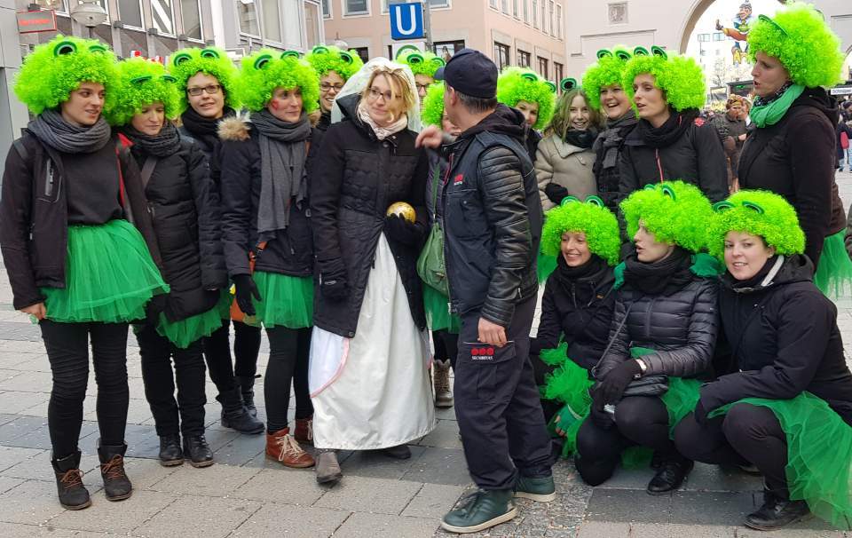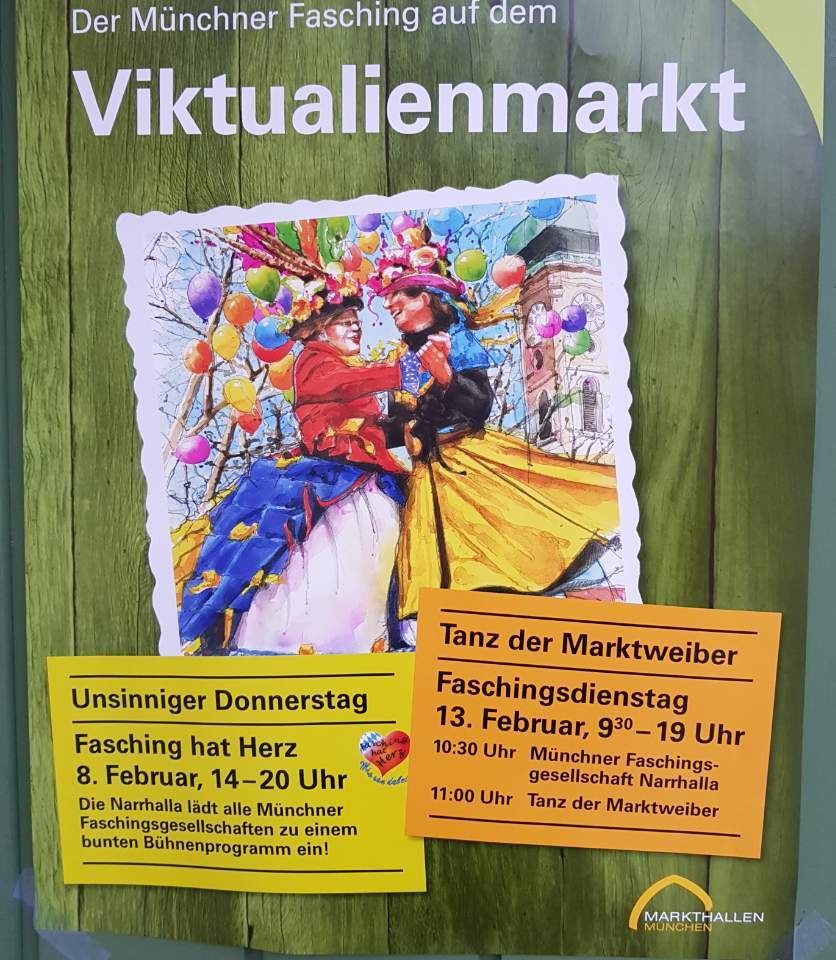 아이 학교에서 빅투알리엔 마켓으로 걸어가는 길도, 마켓의 천막도 온통 초록 물결이었다. 2월의 독일 할로윈 파싱 Fasching 데이 마켓 포스터에도 초록은 어김없이 등장해서 닥쳐 올 봄을 예고했다. 파싱 때 초록 배추머리를 한 사람들의 등장과 함께.