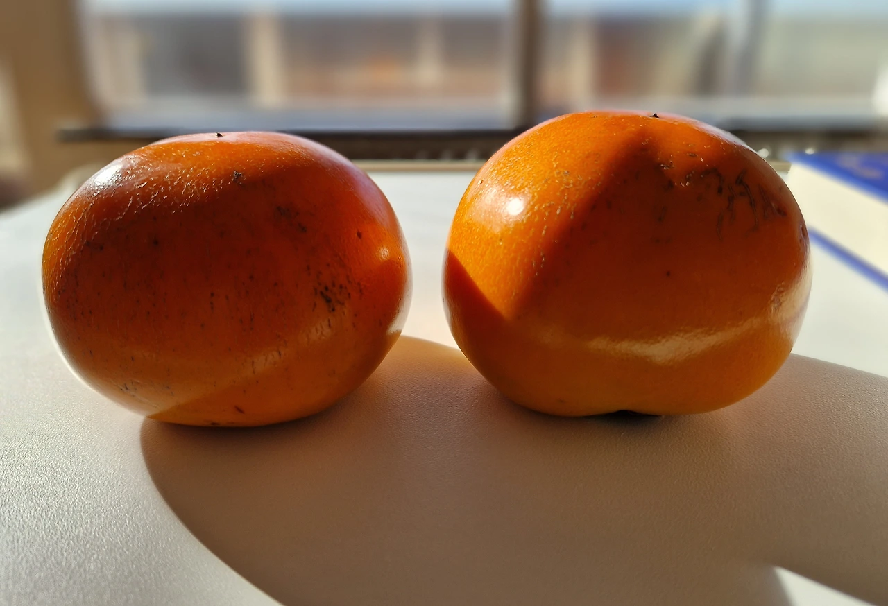 병실 깊숙히 들어오는 햇살. 가을의 과일은 감. 화장실 문제가 생길까봐 덤비지는 못하고 감상만 하고 있다.