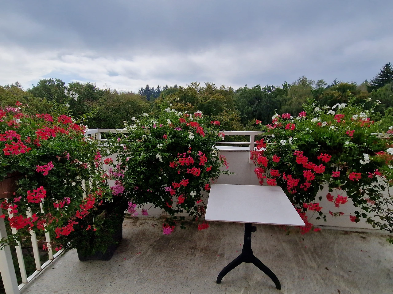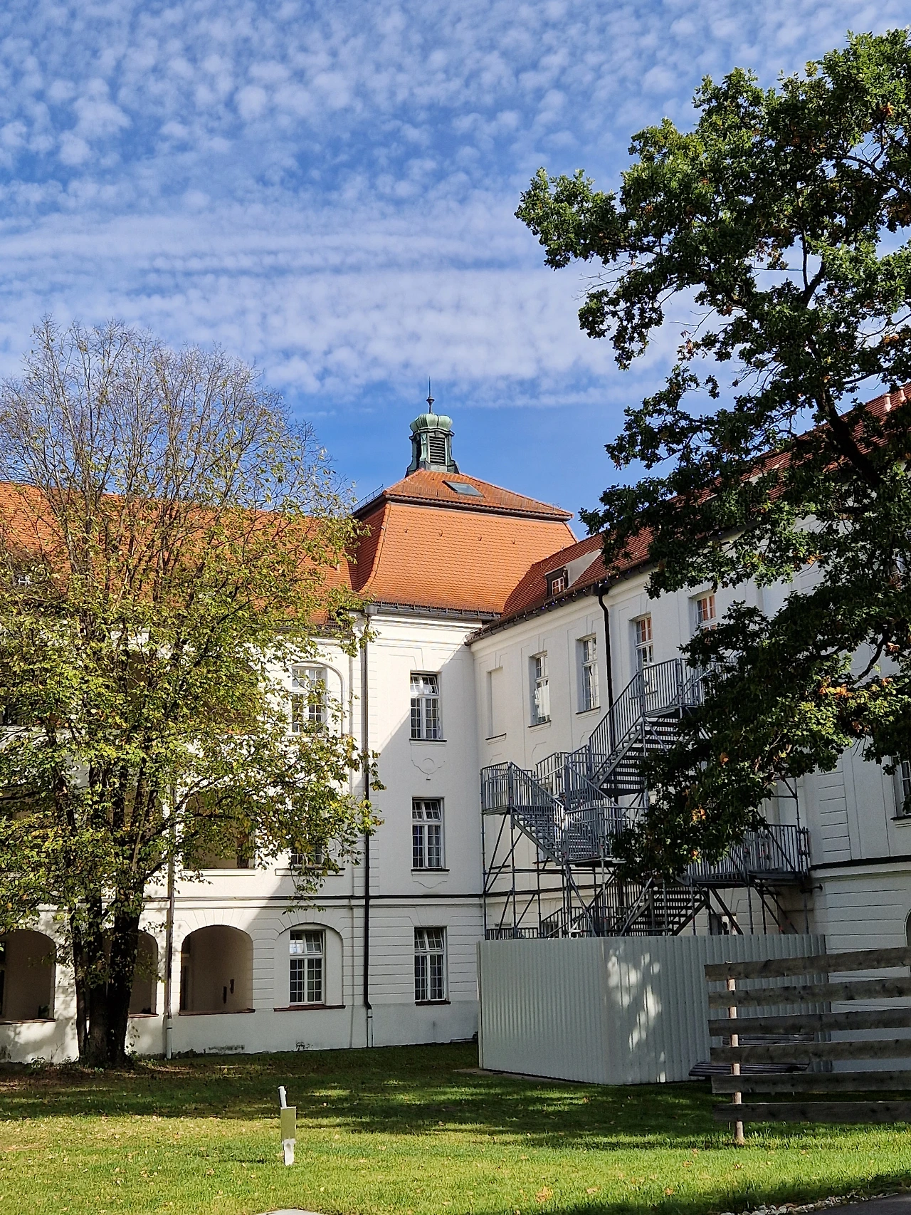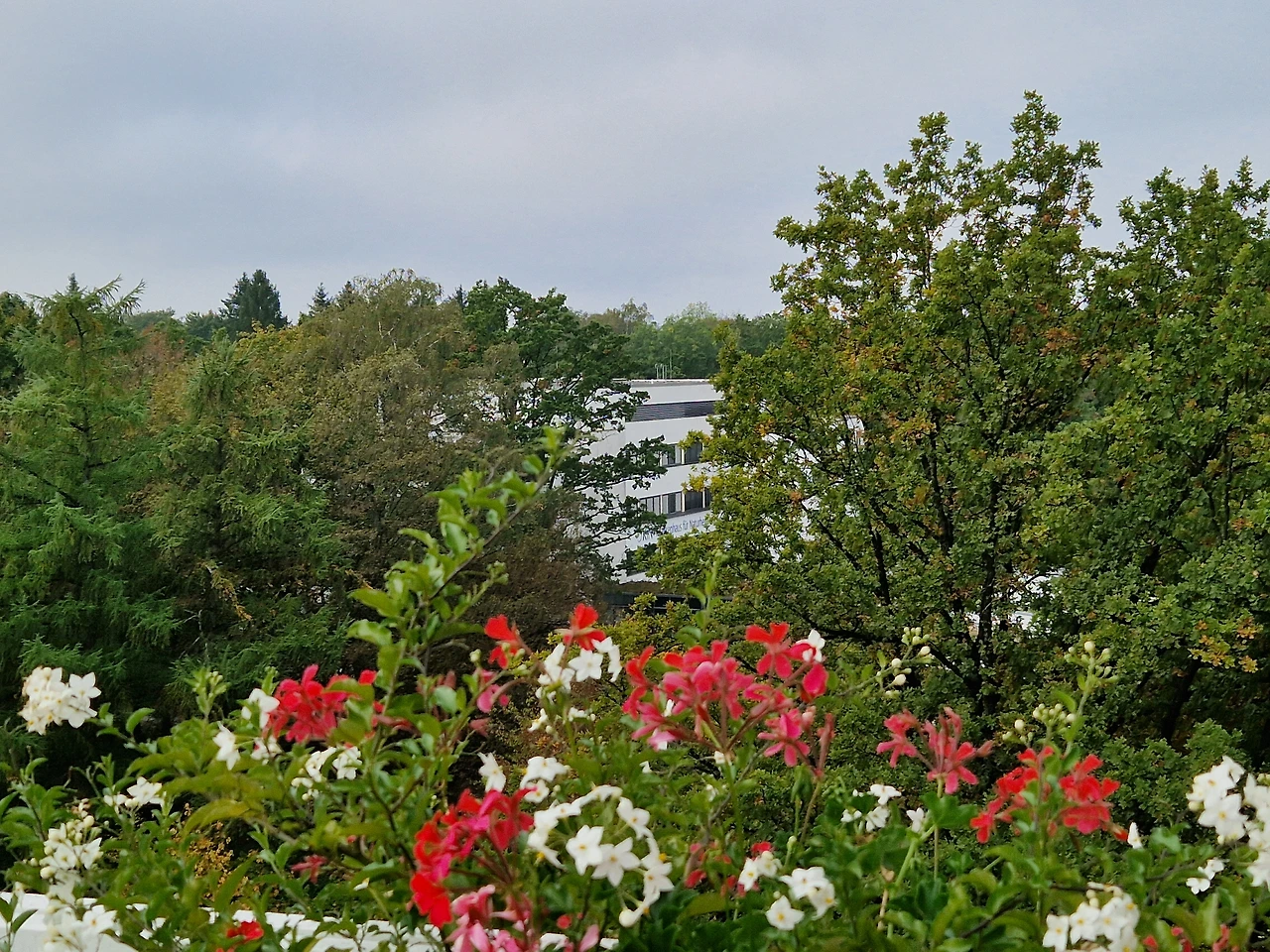 암센터 휴게실 발코니. 오른쪽 가운데 흰색 건물이 병원 내 자연치유센터(KfN)다.