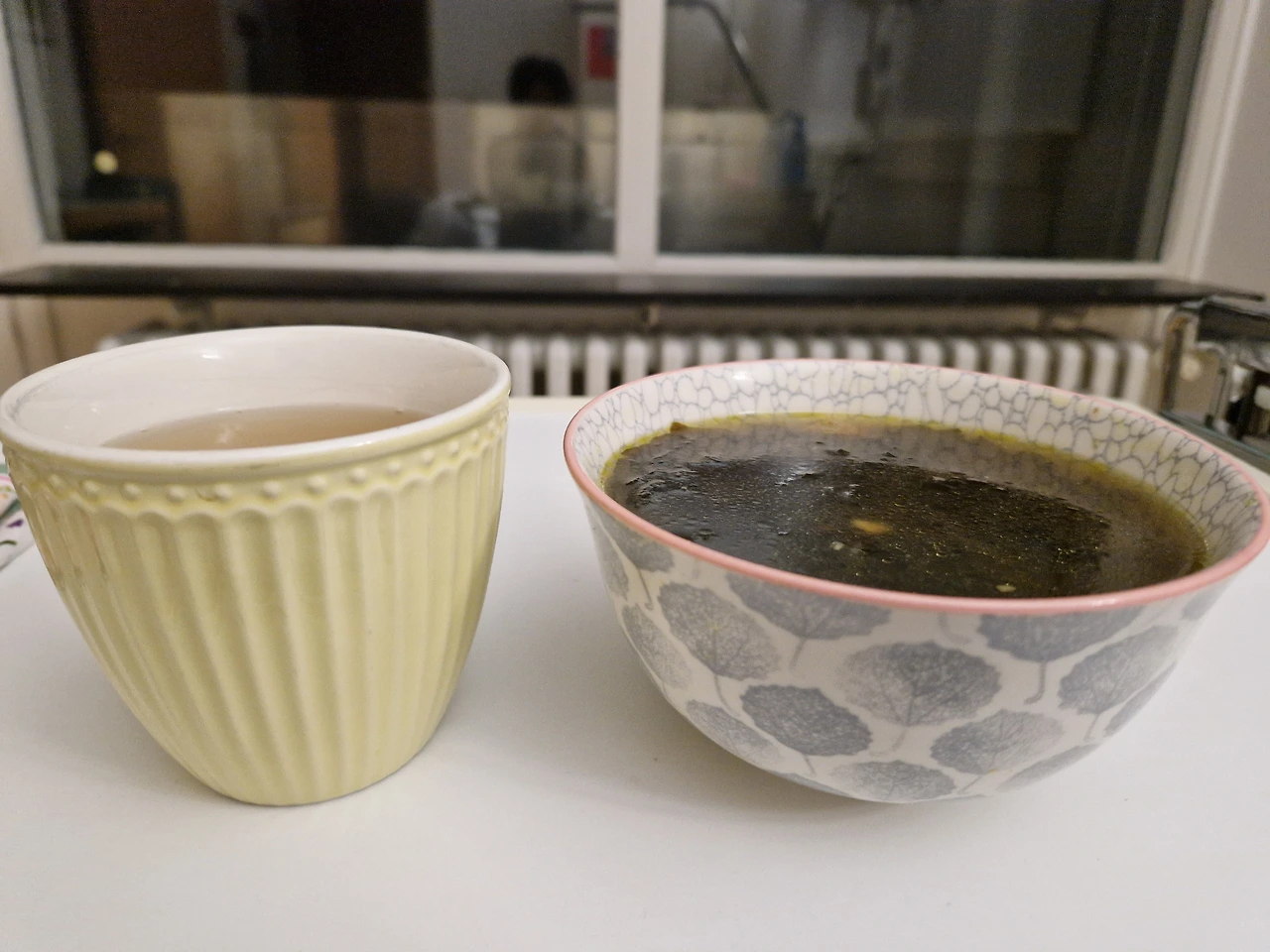 퇴원하던 날 새벽의 미역국과 생강차. 병원에서 마지막 아침 식사.