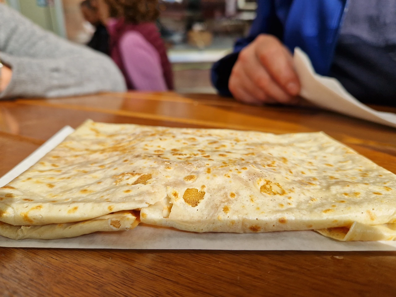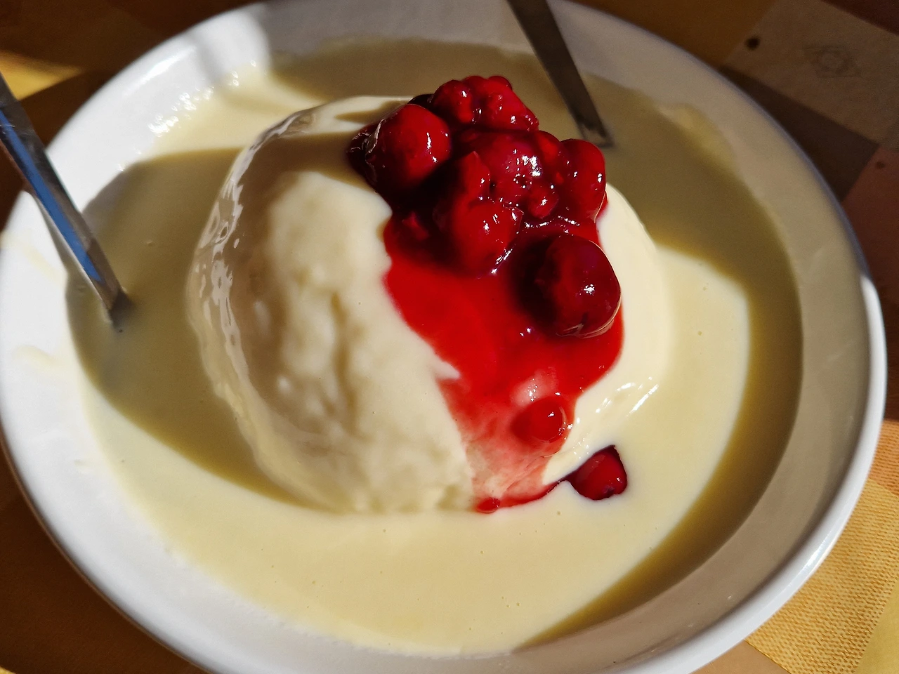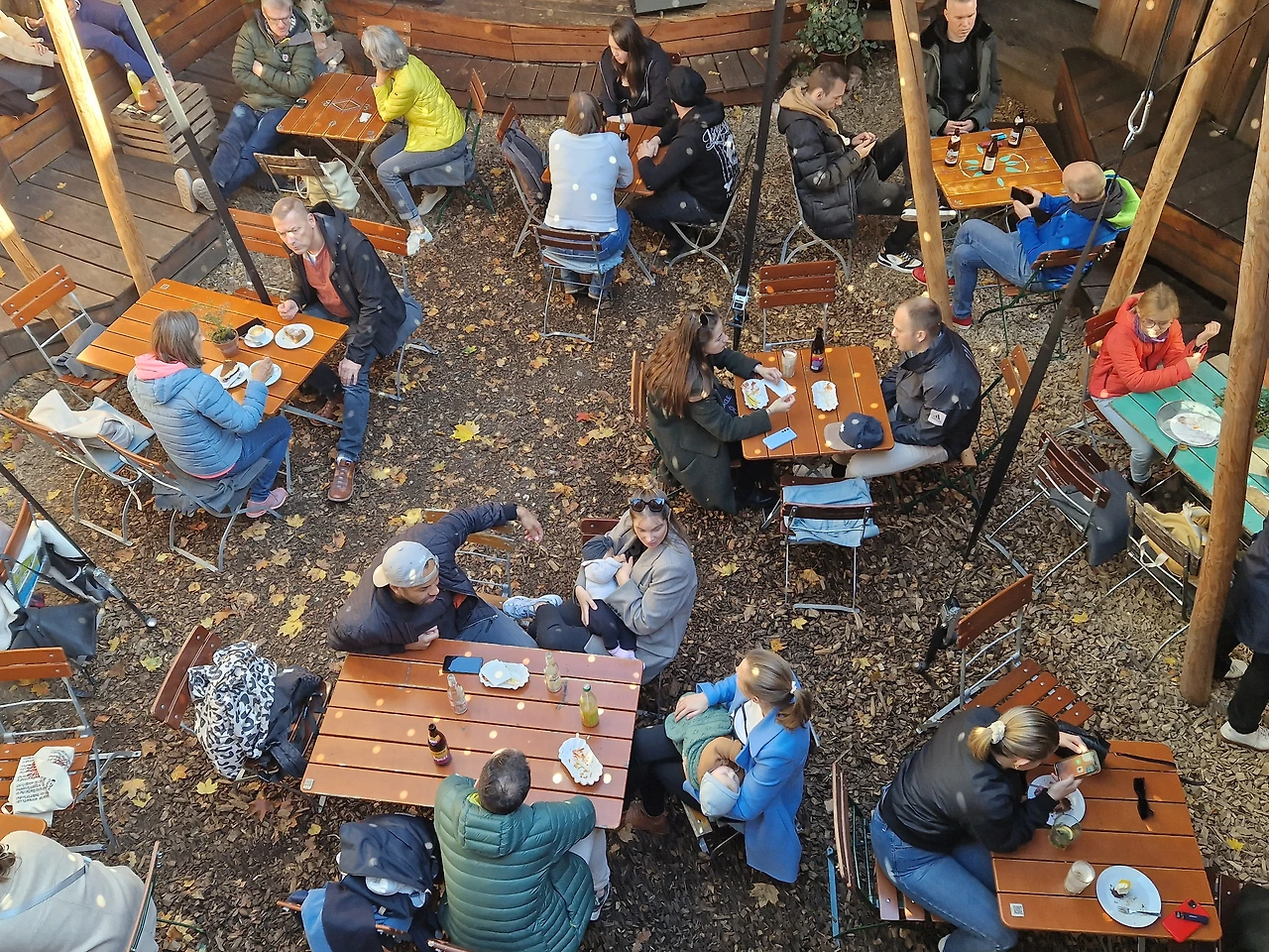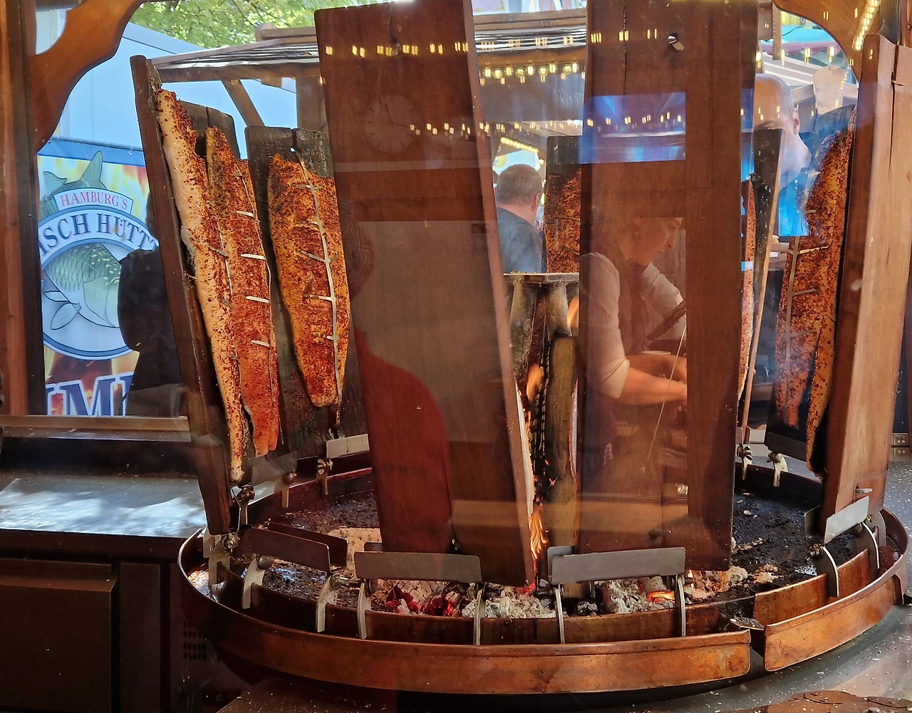 우리의 목표는 아우둘트에서 맛있는 점심 먹기였다. 과연 사람이 많았다. 그래도 누구도 밀치거나 서두르거나 하지 않았다. 우리의 첫 아우둘트 푸드는 찐빵인 덤프누들. 생긴 건 우리 찐빵과 똑같은데 다른 건 속에 앙코가 없다는 거다. 대신 따뜻한 바닐라 소스를 듬뿍 끼얹어준다. 그리고 체리 소스도 한 국자. 따뜻할 때 먹으면 꽤 먹을만하다. 독일의 크리스마스 마켓이나 오픈 마켓에서 흔히 볼 수 있다. 두 번째는 생선구이를 먹으려 했는데 자리가 없어서 못 먹었다. 대신 놀이공원을 끼고 반대편으로 돌아가서 연어구이 세트 메뉴를 먹었다. 양이 꽤 되고 우리 넷 다 배가 고프지 않아서 찐만두도 연어도 나눠 먹었다. 세 번째는 크래프. 그런데 독일답게 크래프가 달지 않고 치즈를 녹여 만들었다. 이게 크래프인가 싶지만 아이의 최애 크래프라고 남편이 두 개나 주문했다. 맛은 짭조름!