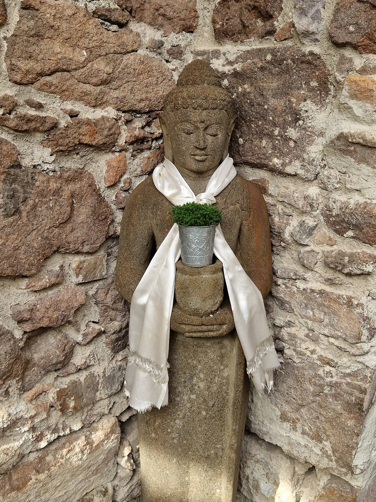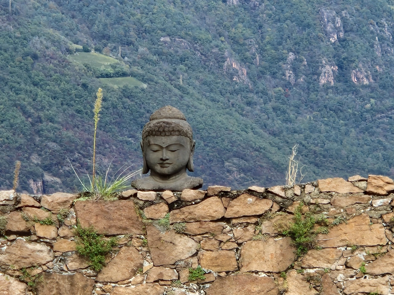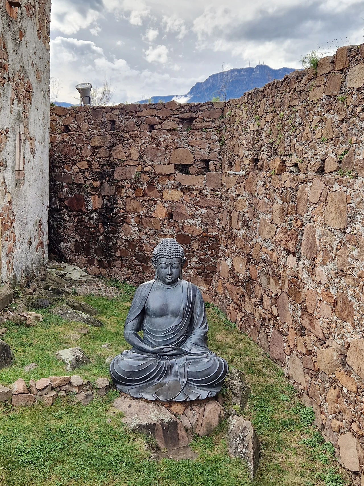 메스너 산악 뮤지엄 정원의 부처님들.
