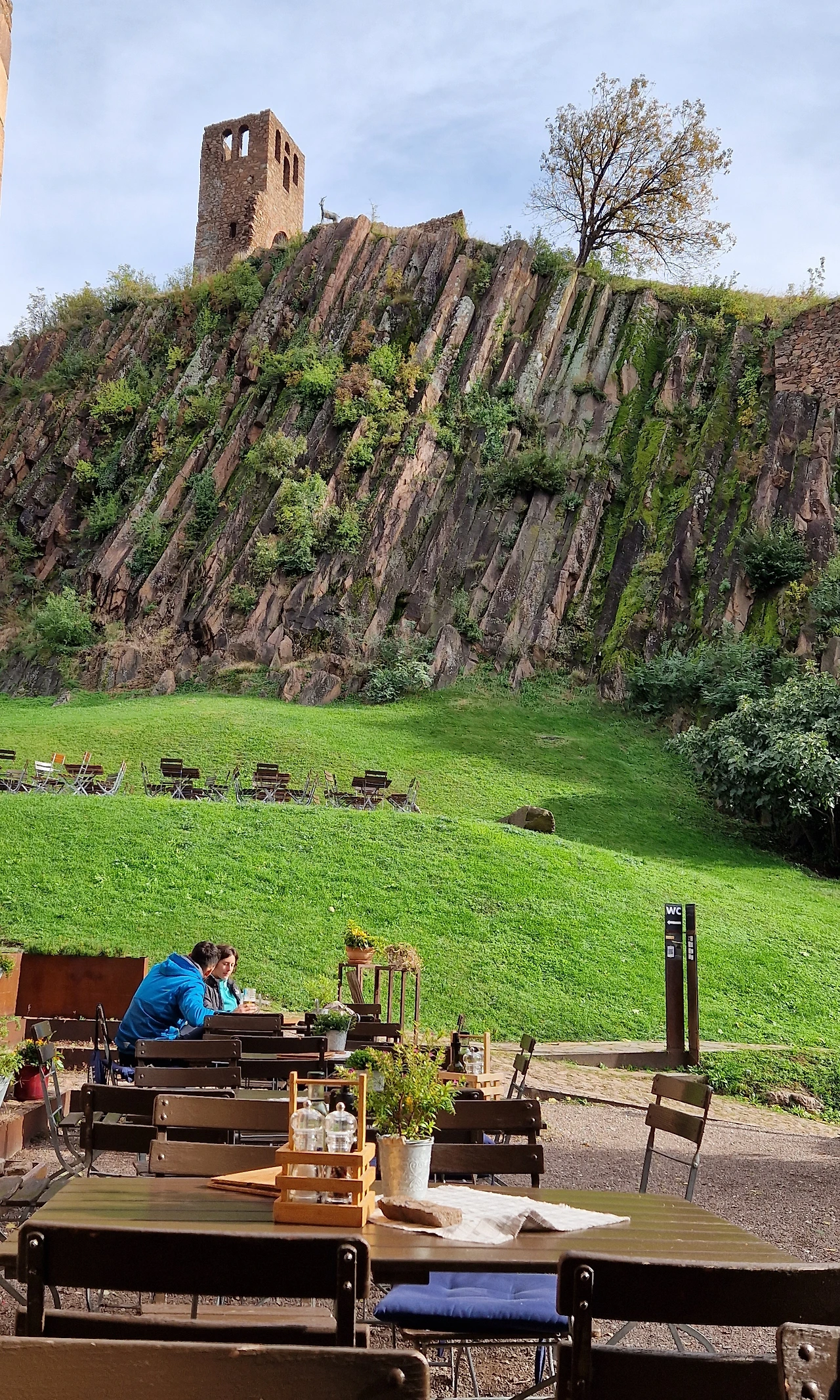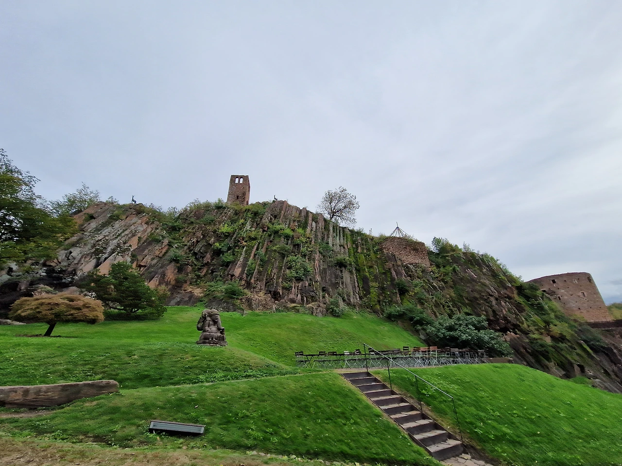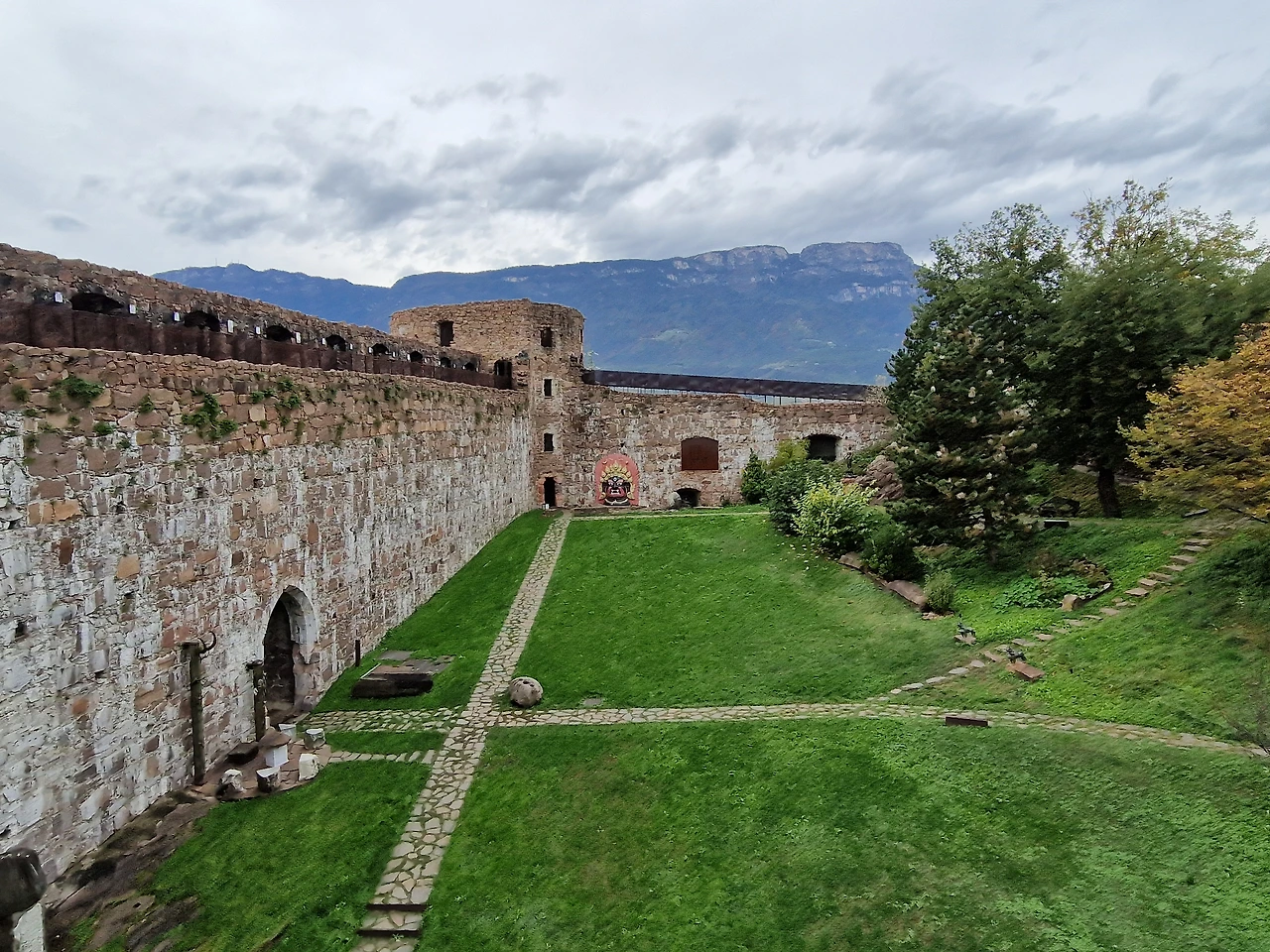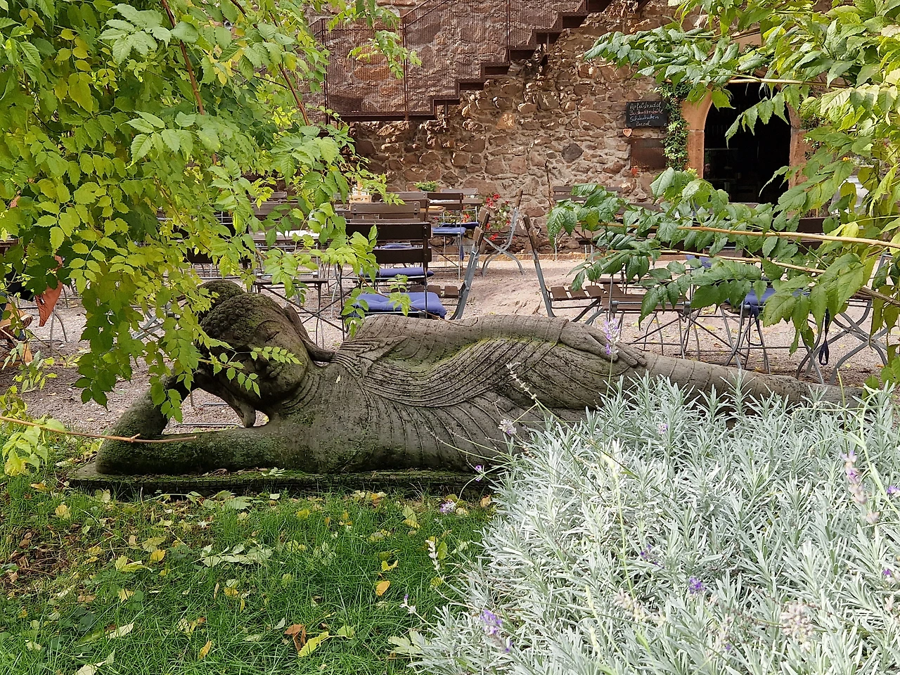 맨 처음 내 관심을 끈 것은 와불이었다. 성을 들어오자 마당에 야외 카페가 있었는데 그 카페와 길 사이 나무 아래 살포시 드러누우신 와불을 보았을 때의 기쁨과 놀라움이라니. 몸집이 작지도 않으셨다. 그런데도 입구 길에서는 잘 보지 않으면 눈에 띄질 않았다. 저렇게 사람을 놀라게 하시다니, 와불님이. 해가 비치는 야외 카페에서는 다시 보리죽을 먹었다. 전날 투프 산장에서 먹을 때랑 가격(9유로)은 동일한데 짜지 않아서 좋았다. 아이는 햄&치즈 샌드위치를, 어머니도 보리죽, 남편은 오랜만에 카푸치노를 시켰다. 야외 카페를 나올 때 다시 보았다. 와불님의 둥근 몸매를. 참 아름다웠다. 첫 매스너 뮤지엄 방문은 첫눈에 반한 와불님으로 만족도 200% 달성. 거기다 성을 한 바퀴 돌 때 누군가 살포시 성의 높디높은 담 위에 올려놓은 부처님 머리가 바위산 슐레른과 나란히 키를 맞췄을 때도 감격.이유는 모른다. 그냥 울컥.