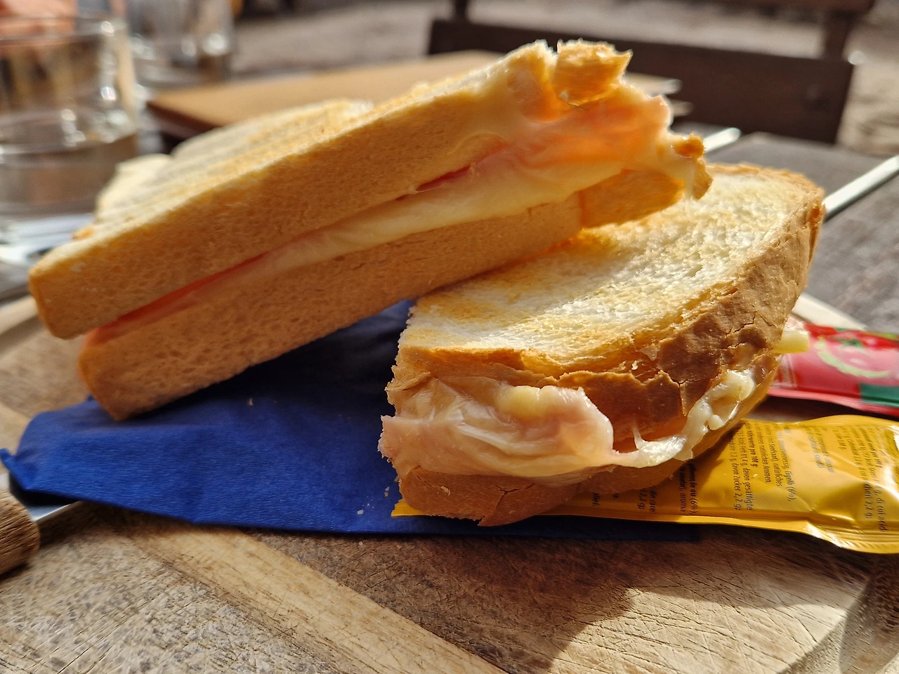 메스너 산악 뮤지엄의 카페에서 우리가 주문한 샌드위치와 보리죽과 카푸치노.