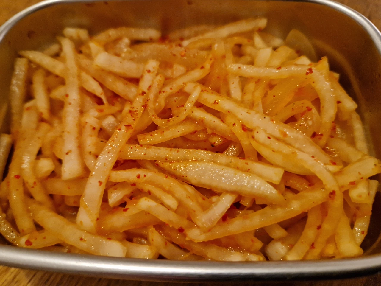 전날에 감자랑 배추 넣고 청국된장국도 끓여두었다. 청국 가루 한 스푼과 된장 한 스푼을 넣고 심심하게. 심심한 무나물과 죽과 함께 먹으니 먹기 좋았다. 죽은 아침에 끓인 보리차나 옥수수차에 보리 잡곡밥을 한두 스푼 넣고 중불에서 10분. 그러면 금방 훌륭한 죽이 된다. 항암 사흘 단식을 시작하던 날에 무생채도 만들어 두었다. 고춧가루는 유튜브에서 시키는 대로 한 스푼만 넣었는데 색이 붉었다. 대신 소금은 아주 조금. 설탕이나 매실 엑기스나 올리고당이나 물엿을 사용하지 않고 귤즙을 넣고 싶었는데 귤도 없어서 오렌지로 즙을 냈다. 항암 끝나면 청국 된장국에 된장을 반 스푼 더 넣고 끓이고 무생채 듬뿍 넣고 큰 양푼에 비벼서 숟가락에 크게 떠서 입 안 가득 넣고 먹어보고 싶다. 계란 프라이도 듬뿍 얹어서! 암 환자가 먹고 싶은 생각뿐이다. 그것도 나쁘지 않다. 먹고 싶은 게 없는 게 탈이지. 다만 속이 든든하게 받쳐줘야 할 텐데.잘 도와주겠지?