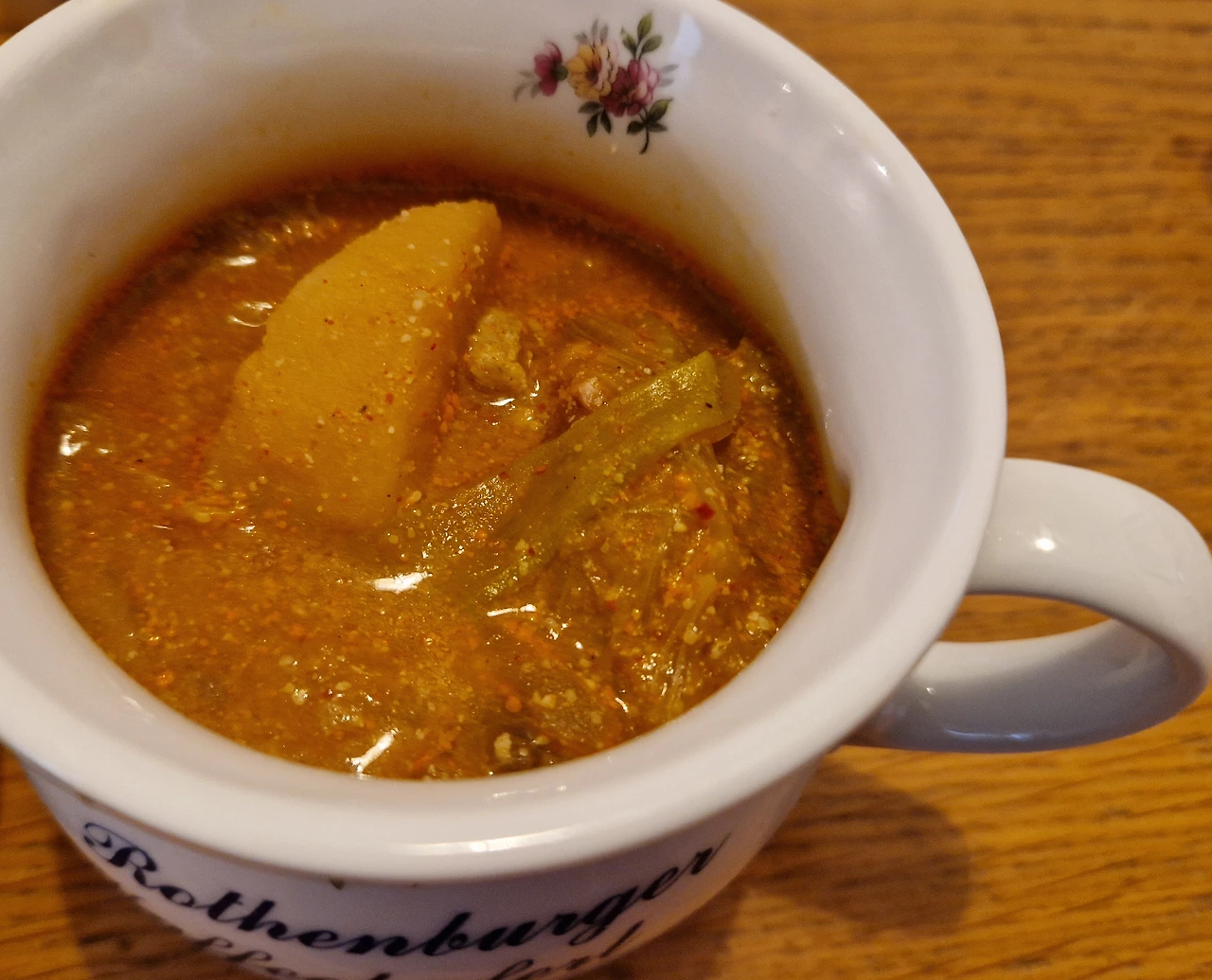신기하게도 매번 먹어도 질리지 않는 건 누룽지였다. 내가 직접 눌린 걸로 누룽지 죽도 끓여보았다. 언제 먹어도 구수하고 맛이 좋았다. 프라이팬에 누룽지를 눌리는 것조차 귀찮을 땐 바닥이 두꺼운 냄비에 물을 자작하게 붓고 밥을 한 주걱 떠서 냄비 바닥에 고르게 펴고 약한 불에 두었다가 밥이 누룽지처럼 바닥에 눌어붙으면 옥수수차를 붓고 끓여 먹기도 했다. 간편해서 좋았다. 된장찌개도 입맛을 살려주었다. 독일 슈퍼에서 파는 작고 매운 고추를 두어 개 잘라 넣으니 톡 쏘는 매운맛이 일품이었다.