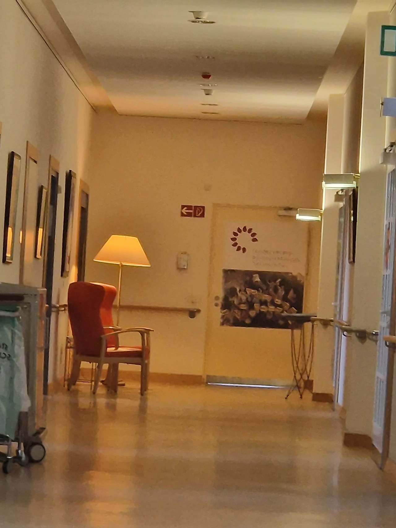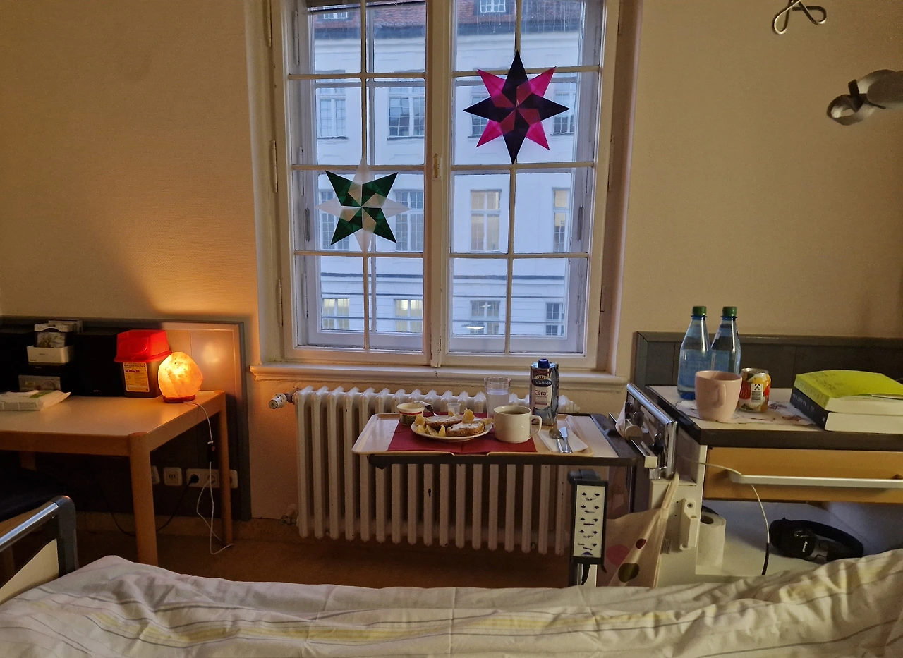 그날 나는 임시 병동으로 옮겨졌다. 내가 간 곳은 완화 병동인 팔리아티브 슈타치온 Paliativstation. 예전에는 그런 병동이 있는 줄도 몰랐다. 중증 환자들의 통증을 완화하고 일상생활의 질을 높여주는 것이 목적인 병동으로 치료가 목적인 곳은 아니었다. 이곳에 온 환자의 20-30%는 집으로 퇴원하지만 대부분은 호스피스 병동으로 간다고. (참고로 독일의 완화 병동의 최대 입원 한도는 3주, 호스피스 병동은 최대 6주라고 한다.) 그러므로 입원 환자의 80%가 중증 암환자인 이곳 완화 병동은 일반 병동과 호스피스 병동의 중간 병동이라고 보면 되겠다. 보통 대기 환자에 비해 병상 수가 모자라 이곳에 입원하기란 쉽지 않다고 한다. 내 경우엔 알고 보니 암센터에서 만났던 할아버지 의사 샘이 이곳 완화 병동의 제일 높은 수석 의사 샘이셨다. 이런 행운이! 성탄절 무렵이라 운 좋게 완화 병동에 자리가 나서 할아버지 의사 샘의 배려로 내가 올 수 있었던 게 아닌가 싶다. 3년 전 암수술 때도, 이 병원의 자연치유센터 KfN에서 요양할 때도 항상 12월인 이맘때였는데 그때도 제법 입원실이 널널했던 기억이 난다. 독일 환자들에게 크리스마스는 가족과 함께 보내는 특별한 명절이기 때문에 이 무렵에 퇴원하는 환자가 많았던 것 같다. 나는 이 크리스마스 특혜를 자주 본 대표적인 케이스라고 하겠는데 앞으로 그런 특혜라면 나 역시 사양하고 싶다.