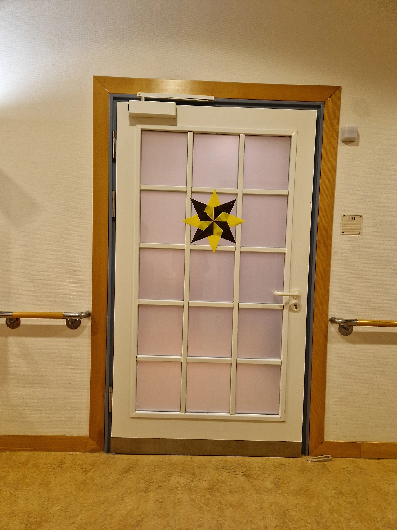 완화 병동(Paliativstation)의 1인실. 위는 병동 복도와 휴게실의 크리스마스 트리와 내 방의 출입문. 가운데는 로비. 아래는 내가 입원한 1인실.
