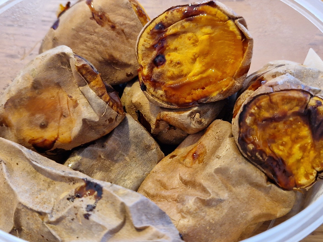 내가 수술 후 입원해 있는 동안 뮌헨의 우리 집에는 한국에서 보낸 무쇠솥이 도착해 있었다. 한국에 있는 언니가 철분 섭취가 중요하니 여기다 누룽지를 만들어 먹으라고 작은 무쇠솥을 사서 보낸 것이다. 저런 무거운 걸 겁도 안 내고 보내는 강심장이라니. 안 무겁다고 해서 진짜 안 무거운 줄 알았다! 언니의 정성을 생각해서 매일 누룽지를 만들어 숭늉을 먹고 있다. 주말에는 어느 분이 달달한 군고구마와 호박죽을 끓여 문 앞에 놓고 가셨다. 미안한 마음과 고마운 마음이 반반이었다. 군고구마는 아이가 무척이나 좋아했는데 나와 남편도 부엌을 오가며 몇 개씩이나 집어먹었다.