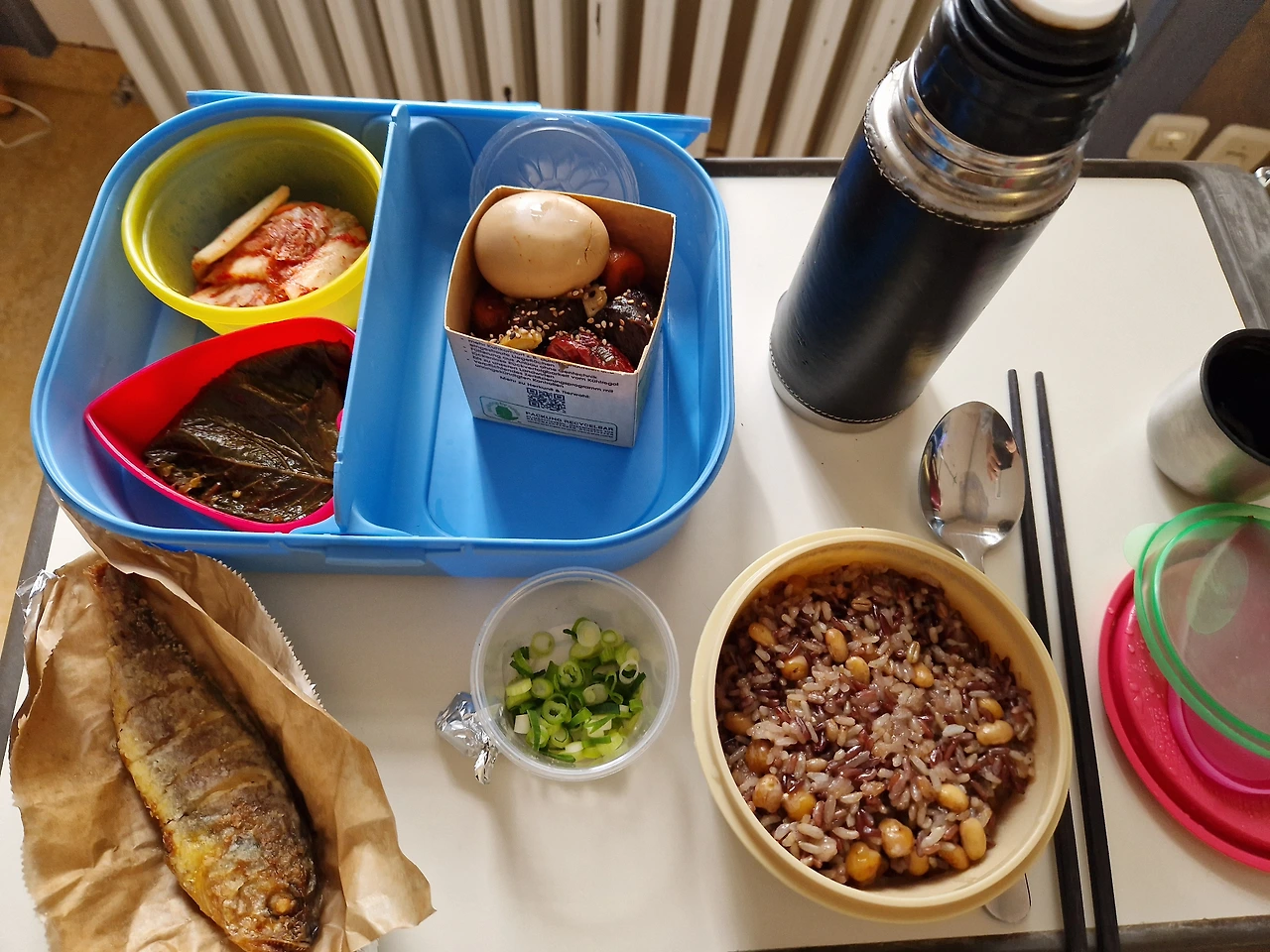 설날이라고, 뮌헨의 친구 M이 병원까지 들고 와서 차려주고 간 한 끼 밥상 앞에서 감격의 눈물과 함께 게 눈 감추던 먹었던 점심.