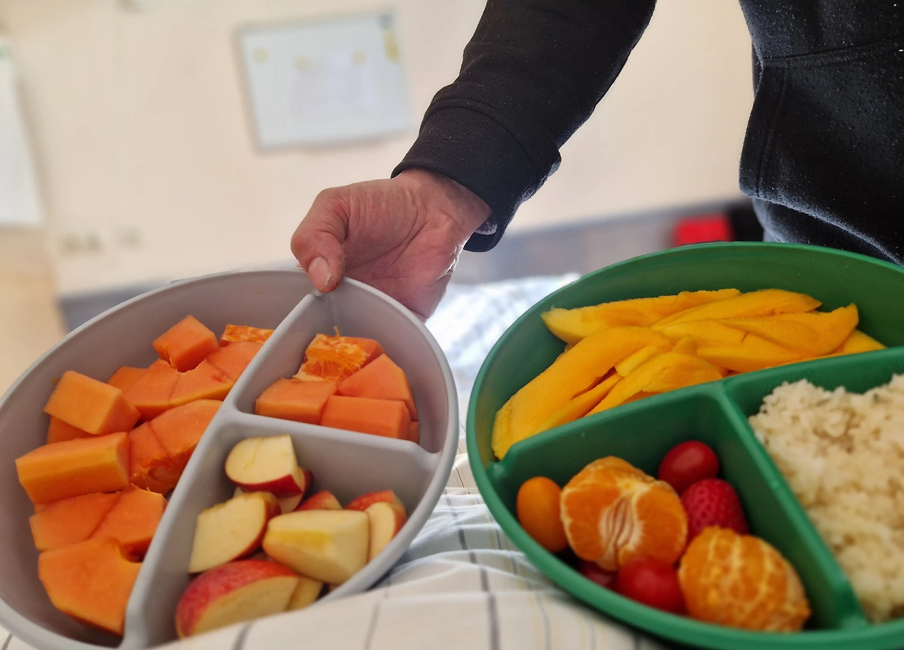 남편이 챙겨온 간식과 밥. 나를 위해 누군가 챙겨준 소중한 선물, 생강청(위). 병원에서 먹는 아침과 점심과 저녁(아래).