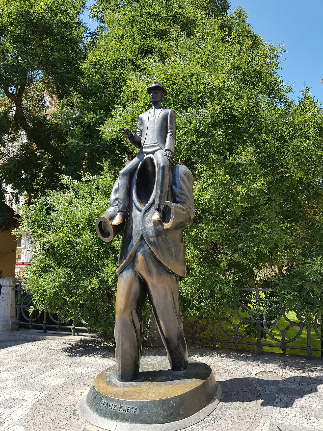 그 아까운 그늘 아래 다리를 쉴 만한 벤치 하나 없다는 게 흠이라면 흠. 솔솔 불어오는 바람에 더위를 식혀가며 벤치에 앉아 카프카를 감상할 수 있었다면 얼마나 좋았을까. 유월의 선물로는 최고 아닌가.