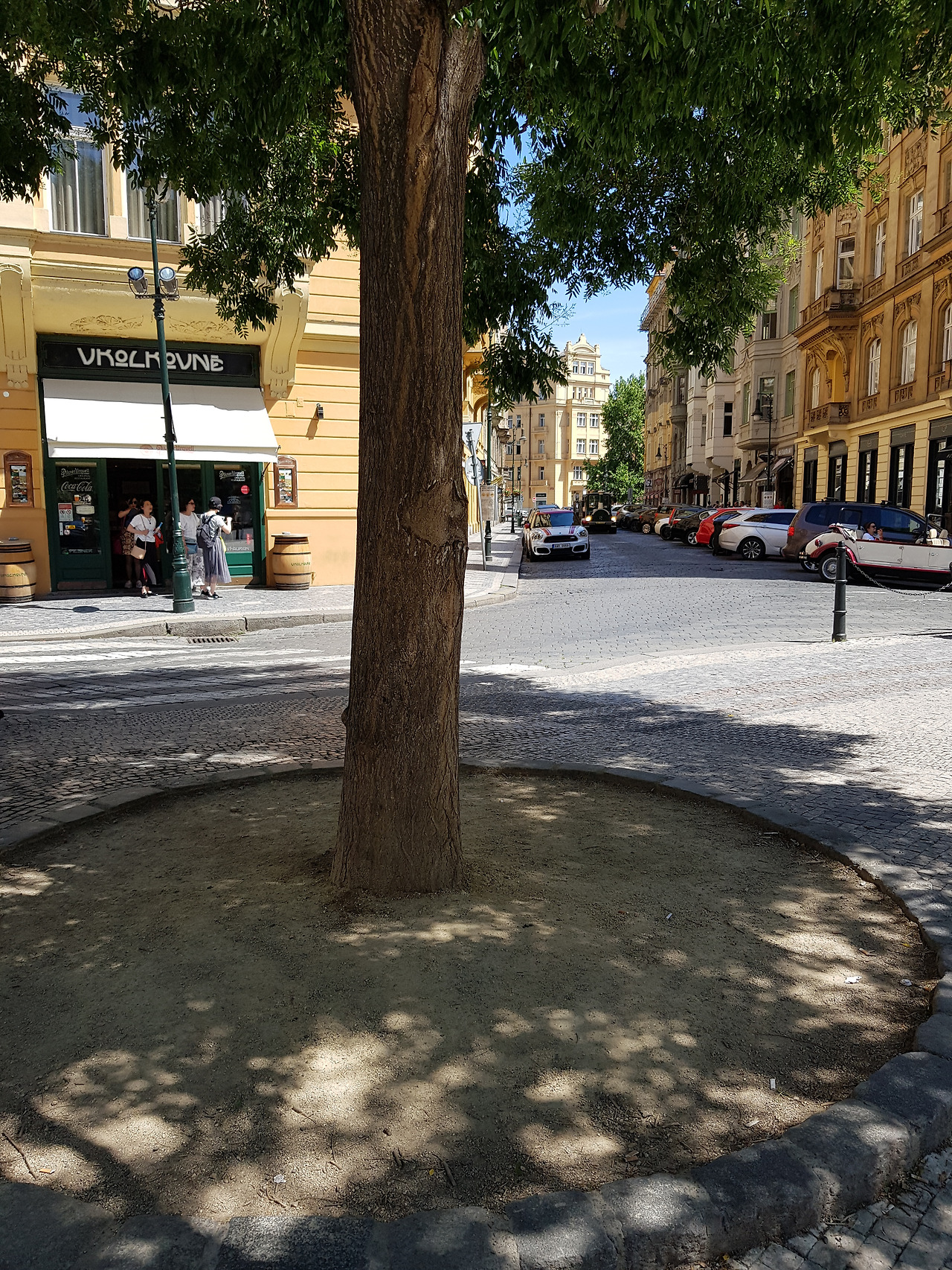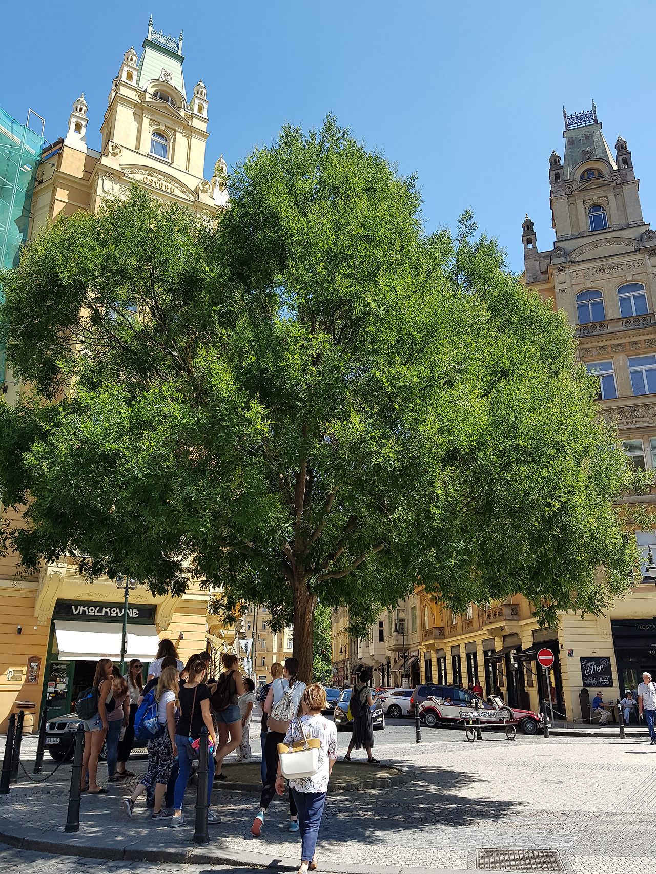 오후가 되니 날씨가 더욱 뜨거워졌다. 동상 앞에 오래 서 있기가 힘들었다. 카프카의 동상 앞은 작은 골목이 다섯 개나 만나는 오거리 공터. 그 한가운데 서 있는 나무 한 그루가 꽤 운치 있는 로터리 역할을 맡고 있었다.