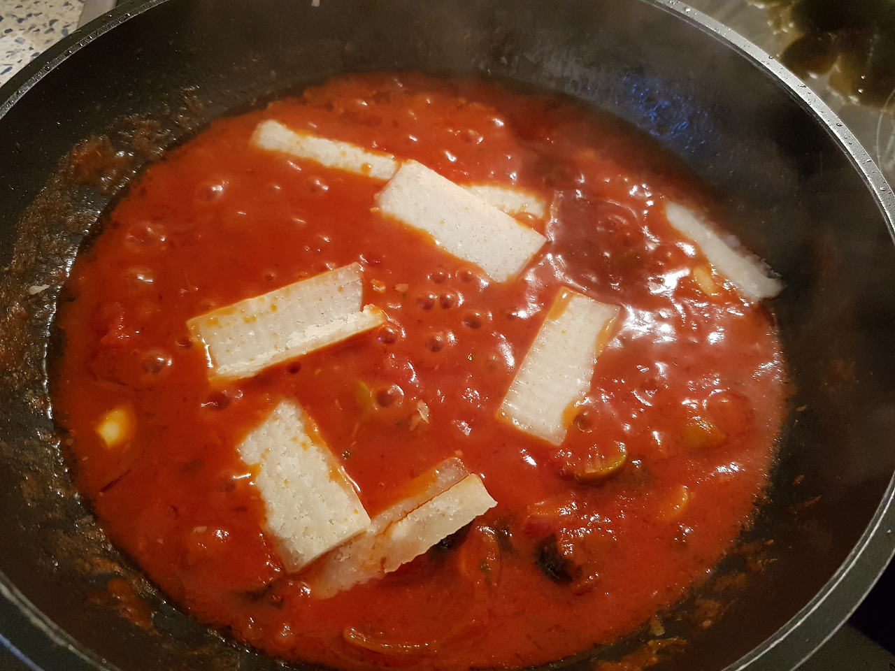 슈퍼에서 파는 뇨끼 500g 가격도 무지 싸다. 팔팔 끓는 물에 한소끔 끓이다 위로 떠오르면 체에 밭쳐놓는다. 금방 끓어오르기 때문에 넘치기 직전에 국수 삶듯 찬물을 두 번 부었다. 면이 더 쫄깃해지지 않을까 하는 계산에서였다. 예감은 틀리지 않았다. 너무 많이 삶을 필요도 없다. 소스가 준비되면 소스에 넣어 한번 더 화르르 끓일 테니까. 소스 준비는 파스타와 동일. 양파와 마늘을 올리브 오일에 익히다 토마토소스를 붓는다. 뇨끼 삶은 물을 육수로 쓰고 덩어리 파메산 치즈를 잘라 넣었다. 마지막에 생바질 잎을 얹어 먹으면 끝.