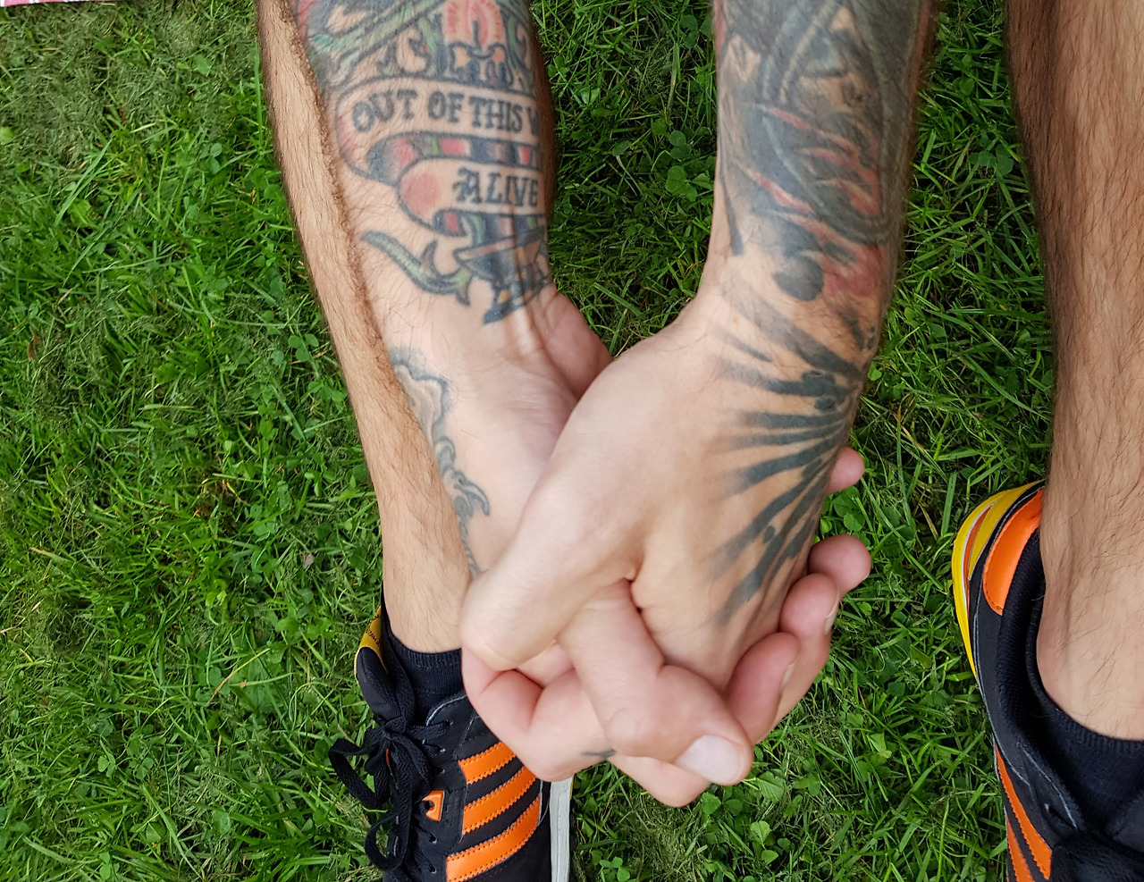 오해는 마시라. 나는 이 강사에게 손톱만큼도 관심이 없다. 오로지 그의 손등에 흑심이 있을 뿐. 그는 흔쾌히 허락했다. 매번 몸풀기가 시작될 무렵 수업에 합류하던 내가 어제는 10분이나 일찍 갔다. 그는 일찌감치 와서 큰 비치 타올을 잔디 위에 펼쳐놓고 앉아있었다. 말없이 사진만 찍을 수는 없는 노릇이라 그와 이런저런 이야기를 나누었다. 살면서 타투를 할 기회가 한 번도 없었노라는 내 말에 그가 조용히 대답했다.