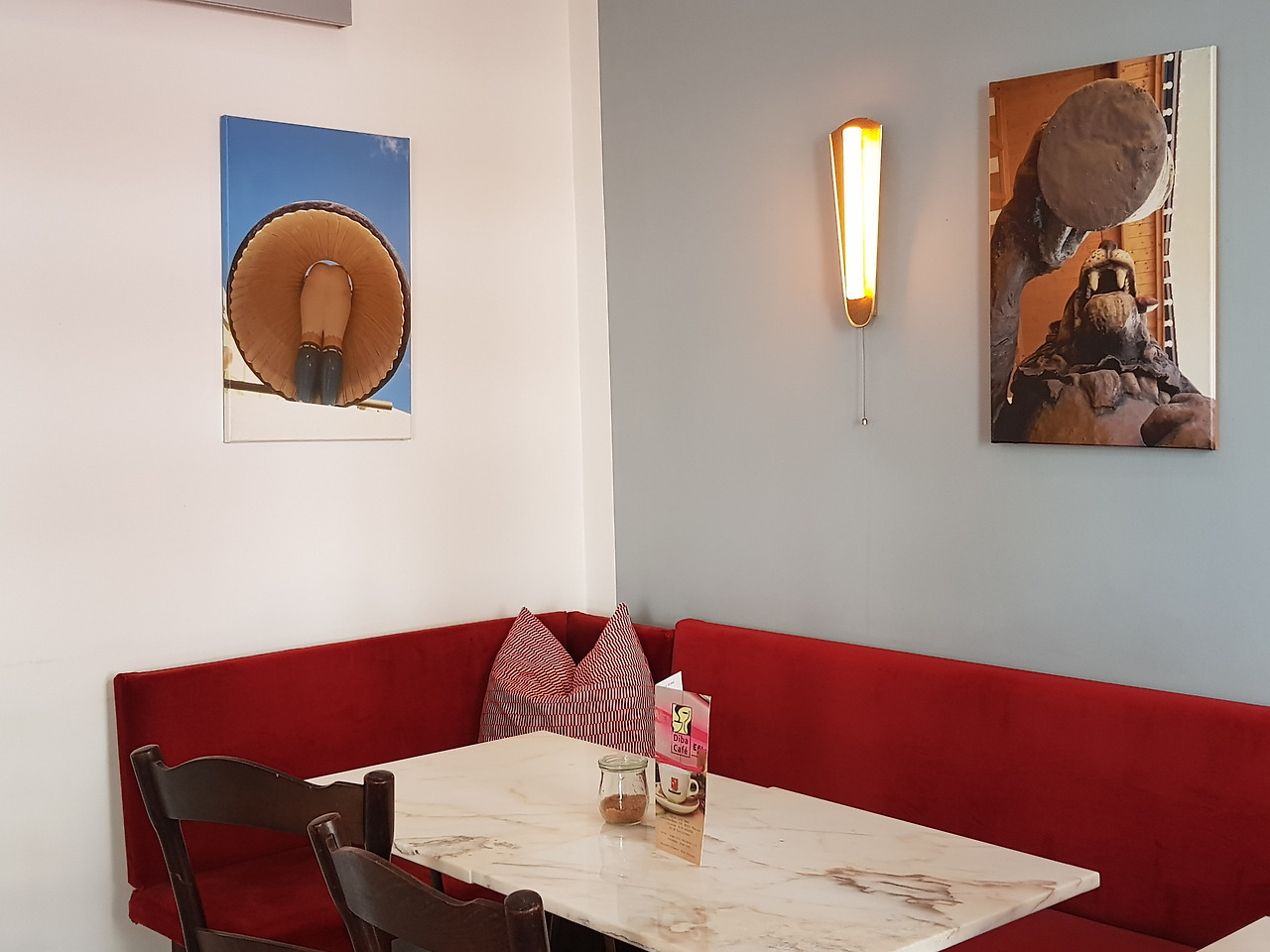 주인장과 잠시 얘기를 나눴다. 고국이 이란인 중년 남자. 아니나 다를까 이란에 다녀왔단다. 85세 어머니가 아프시단다. 남동생도 뇌수술을 받았다고. 수술 이후가 더 걱정이라며 얼굴이 수심으로 가득했다. 나 역시 그런 친구가 있어 남 얘기 같지 않았다. 그의 어머니 얘기를 들을 땐 친정 엄마의 10년 후를 생각했다. 그에게 위로를 전한 뒤 카페 내부를 둘러보니 벽면 사진들이 달라져 있었다. 이란 풍경 대신 옥토버 페스트. 괜히 애잔한 기분이 되었다.
