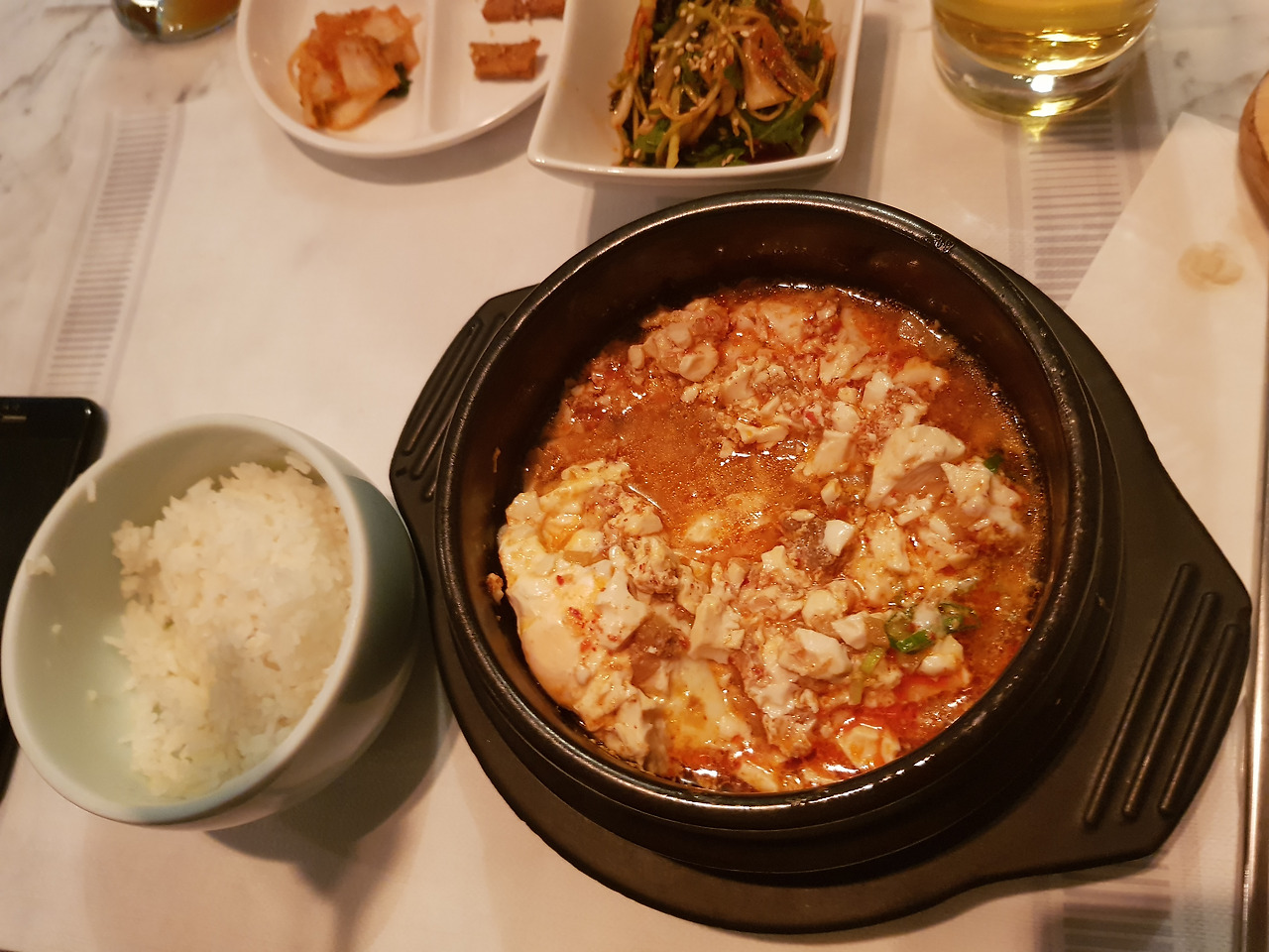 조카가 우리를 초대한 것은 비번인 금요일 저녁이었다. 저녁 8시가 넘어 조카와 같이 아리수 식당에 도착하니 식당 안은 이미 만석이었다. 그 바쁜 시간에 좌석 하나를 남겨두신 사장님의 배려가 고마웠다. 부모도 아니고 그냥 이모일뿐인데. 남편은 김치찌개, 아이는 참치 비빔밥, 조카는 순두부, 나는 돼지 불고기를 각각 주문했다. 전채로 나온 전은 바삭하고 고소했고, 주문한 메뉴마다 하도 맛있어서 네 가지 음식 사이를 종횡무진 오가느라 바빴다. 그날 가장 맛있었던 건 순두부! 다음에 가서 또 먹어봐야지.
