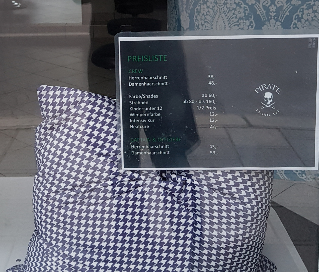 문제는 가격이 너무 세다는 것. 우리로 치면 길이만 조금 자르고 정리하는 수준인데 바바라가 알려준 미용실은 기본이 50유로. 그 가격에는 머리 감기와 자르기 그리고 드라이 요금이 포함된 세트 가격이었다. 요가 선생님께 소개받은 미용사는 63유로. 노아 엄마가 옆집 한국 사람에게 물어서 알려준 일본 미용실은 70유로. 거기에 각각 팁까지 고려하면 망설이게 되는 요금이었다. 할 수 없이 가격은 포기하고 오래 다닐 수 있는 곳으로 고른 곳이 동네 미용실인 해적 미용실이다. 가격은 48유로(팁 포함 53유로).