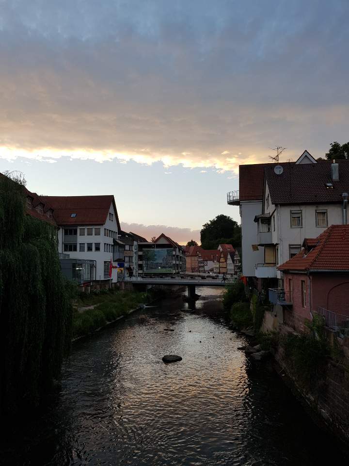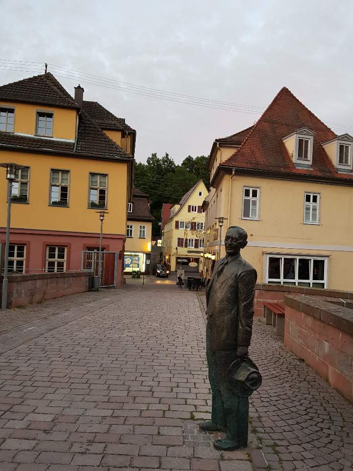 뮌헨에서 슈투트가르트까지 가는 여정은 따로 설명해야겠다. 몇 시간 되지 않는 그 짧은 시간 동안 몇 가지 나누고 싶은 풍경이 있어서. 슈투트가르트에서 뵈블링겐까지는 계획대로 기차를 탔고, 뵈블링겐-칼브 Calw까지도 역시 시외버스를 타고 1시간 동안 구불구불 시골길을 달렸다. 시외 버스비는 착했다(편도 €5,65). 오후 늦게 뮌헨을 출발한 탓에, 거기다 평소 연착하기를 밥 먹듯 하는 독일 열차 덕분에 이후 연결 편마저 헝클어지는 바람에 저녁에 칼브의 작은 호텔에 체크인을 했다. 오후 4시 뮌헨을 출발 저녁 9시에 헤세의 고향 칼브 Calw에 도착한 것이다. 다행히도, 정말 다행히도, 내가 감으로 예약한 호텔이 세상에나, 칼브의 헤세 다리 바로 건너편이었다면 믿겠는가. 그것도 달빛마저 빛나는 밤에 말이다!