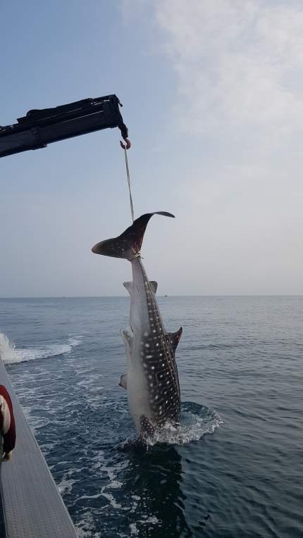 (Jtbc 오선민 기자 : '그물에 걸린 13m 초대형 고래상어, 선원들 사투 끝에..')