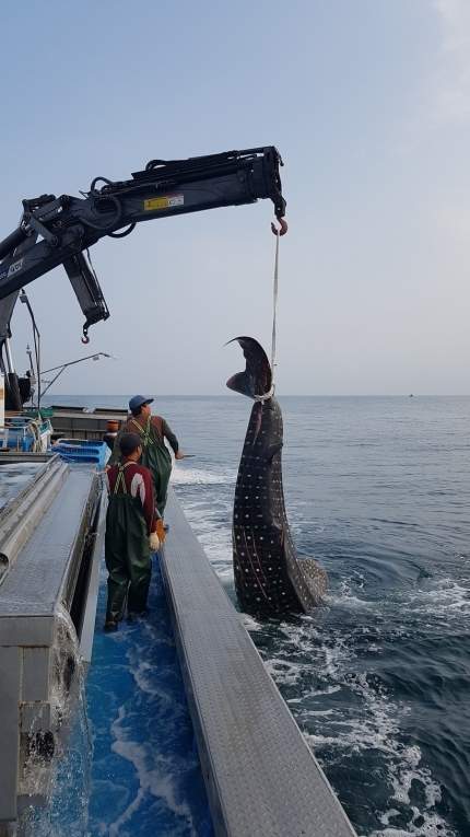 더욱 놀라운 사실은 작년 8월에도 같은 곳에서 6m짜리 고래상어를 풀어준 적이 있다고. 세상에! 살면서 두 번씩이나 그물에 걸린 고래상어를 풀어준 사람이 몇이나 될까. 평생 고래상어를 보지도 못한 사람도 많을 텐데. 고래상어가 바다로 돌아간 후 가슴이 설레었다고 30대의 젊은 선장은 말했다. 쿵쾅쿵쾅 가슴도 뛰었다고. 모르긴 몰라도 세상에 나서 그보다 더 가슴 뛰는 일이 또 있을까. 돈의 유혹이 펄펄 살아있는데. 천신만고 끝에 살아난 두 마리 고래상어가 천수를 누렸으면 좋겠다.