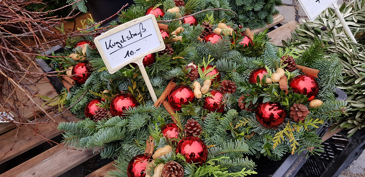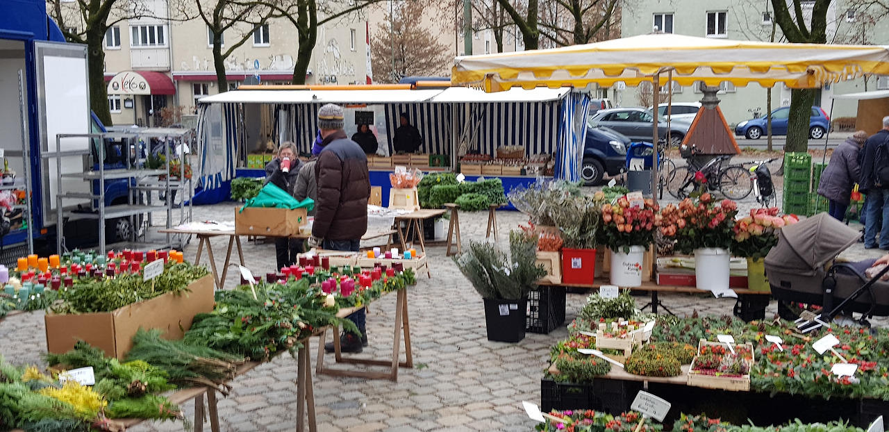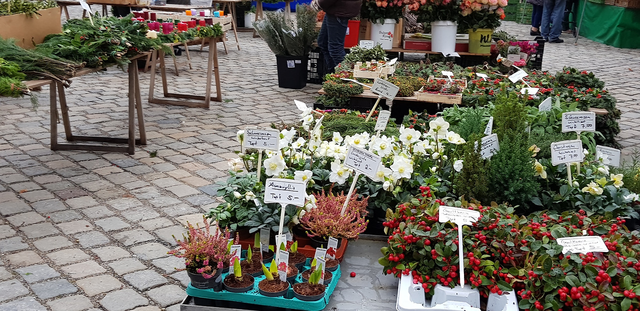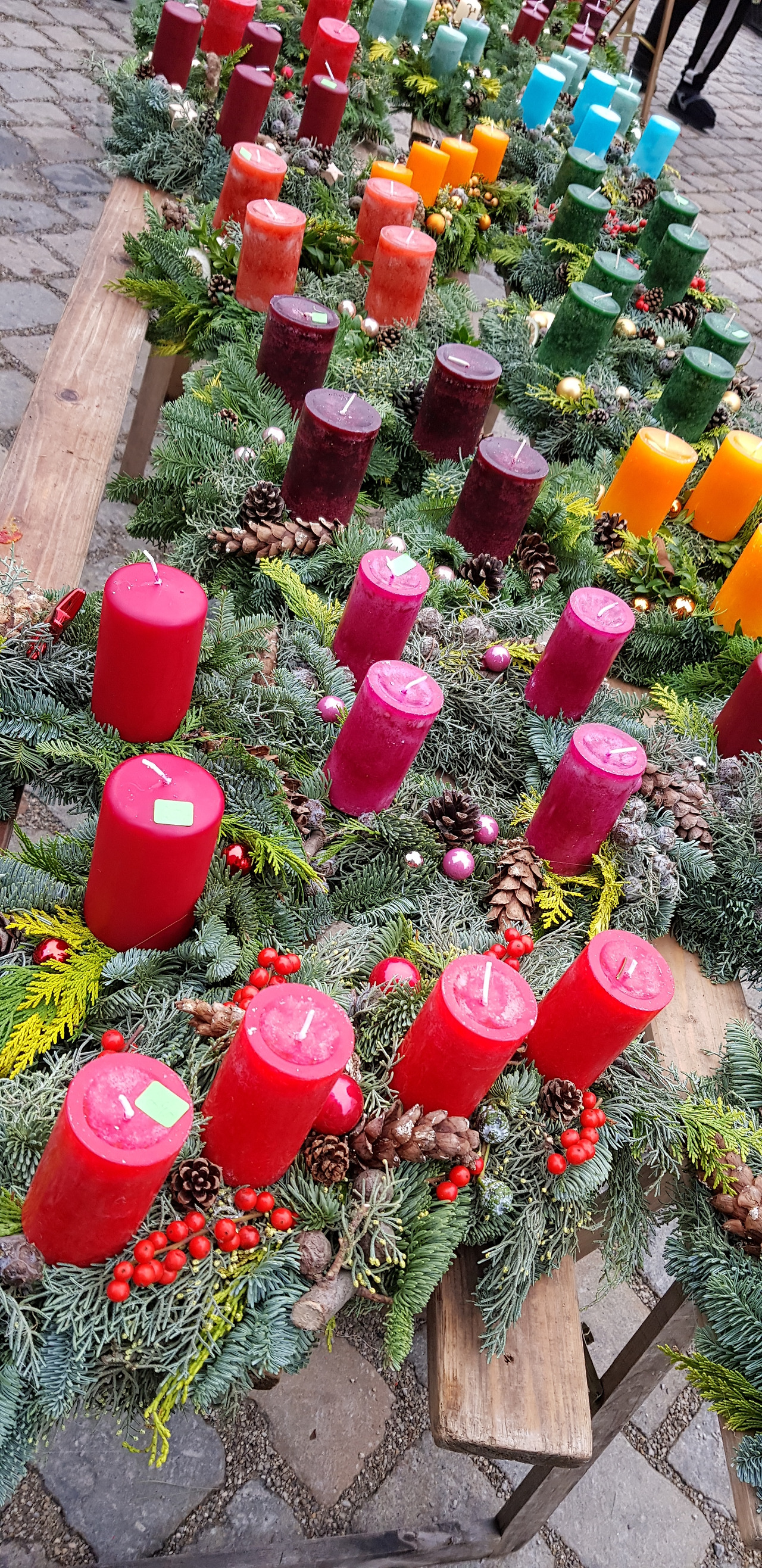 장터에는 한창 크리스마스 장식을 팔고 있었다. 12월 첫 주부터 하나씩 켜는 장식초 4개(아드벤츠 크란쯔 Adventskranz:강림절초)도 여기서 파는구나! 아드벤츠 크란츠를 만들기 위한 전나무 리스도. 촛불은 12월 첫 번째 일요일부터 하나씩 켠다. 역시 장터에 와서 보고 배우는 게 많다. 사계절과 절기가 생생하게 느껴지는 곳. 장터야말로 도시인들의 삶이 펄펄 살아 숨 쉬는 곳이었다. 대도시에 살면서 흙냄새 나는 야채와 과일과 빵을 사는 즐거움.