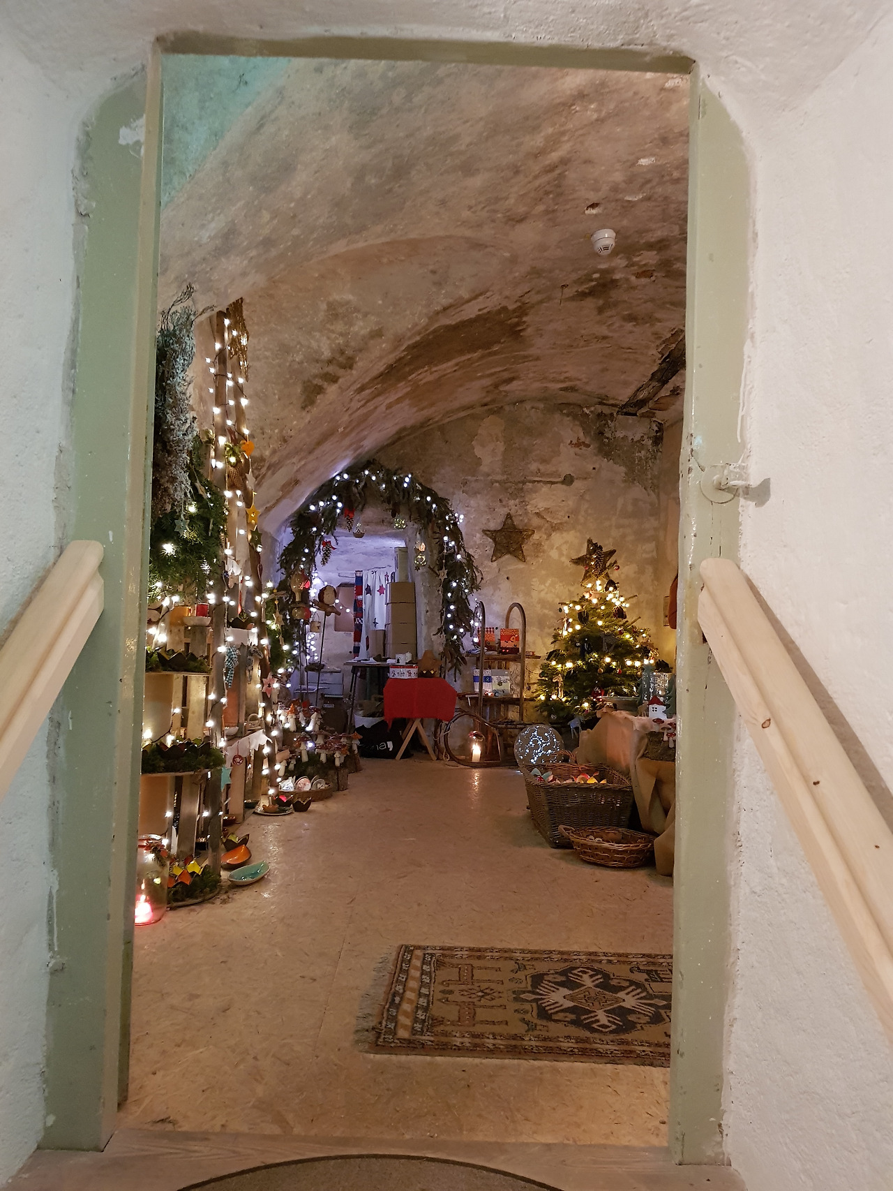 성 입구의 주차장에는 차가 많지 않았다. 산 아래로는 들판이었다. 어두워지는 늦은 오후엔 방문객이 더 늘 것이다. 성 안의 마당은 넓지는 않았으나 성탄 마켓을 열기에 충분했고 둥글게 설계된 성의 1층과 2층 내부에는 레스토랑을 비롯한 다양한 크리스마스 가게들이 보물처럼 숨어 있었다. 우리는 바람 부는 성 마당에 서서 뜨거운 와인인 글뤼바인을 나눠마셨다. 글뤼바인도 맛있었지만 아이들용으로 파는 따끈한 킨더푼치 맛도 상큼했다.