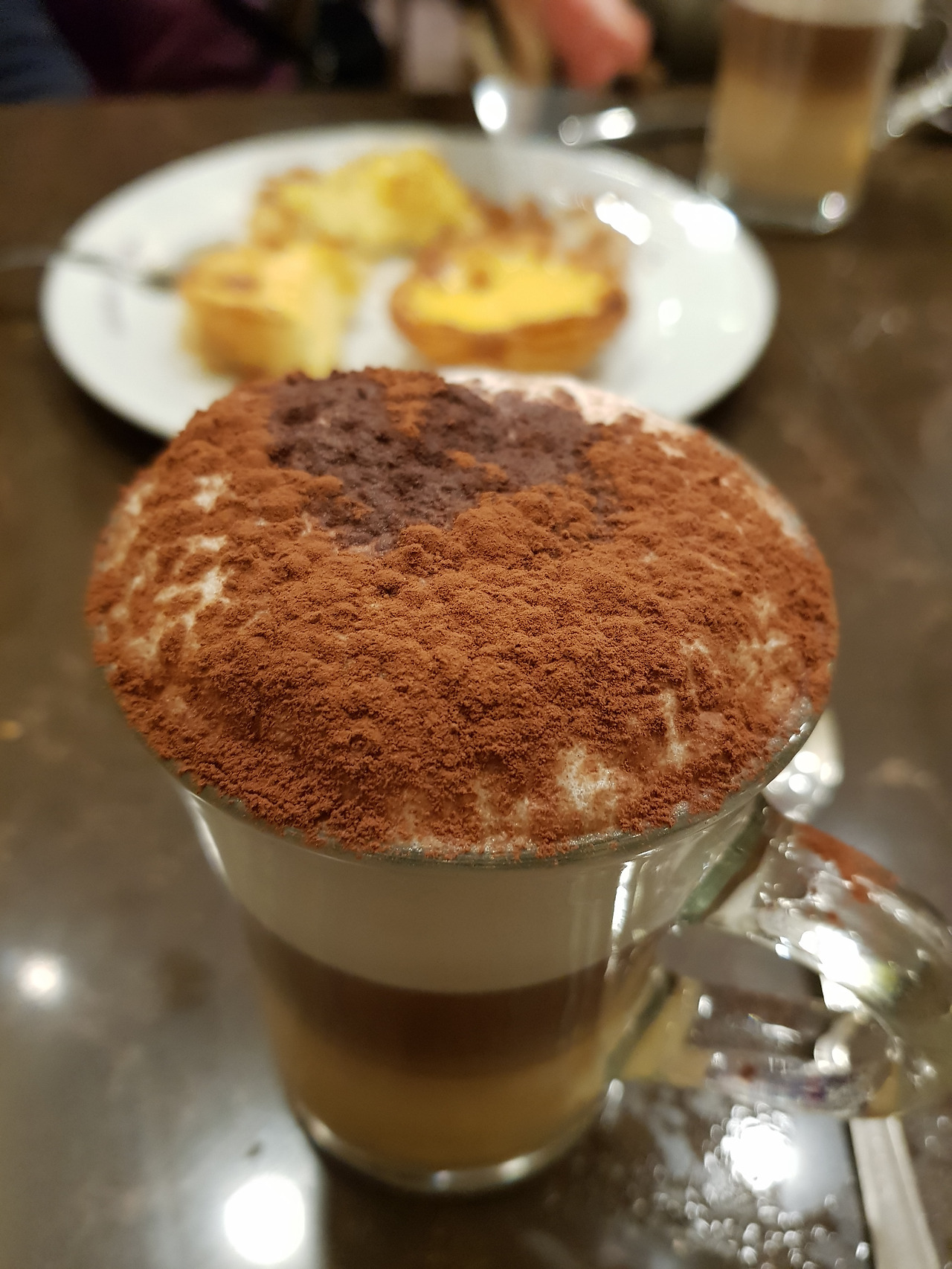 호텔로 돌아오는 길에는 카페에 들러 커피를 마셨다. 포르투갈은 '나타'라는 에그 타르트가 유명하다고. 꽃처럼 풍성한 카푸치노도 인상적. 맛은? 당연히 둘 다 좋았다. 타일도 유명하다더니 카페 위쪽 벽에 아무렇지도 않게 붙여진 타일까지도 예술적이었다. 3박 4일이 너무 짧을 것 같은 생각. 이 도시가 좋아질 것 같은 예감과 함께. 핑크빛으로 물들어가는 호텔 앞 광장 너머도 아름다웠고.
