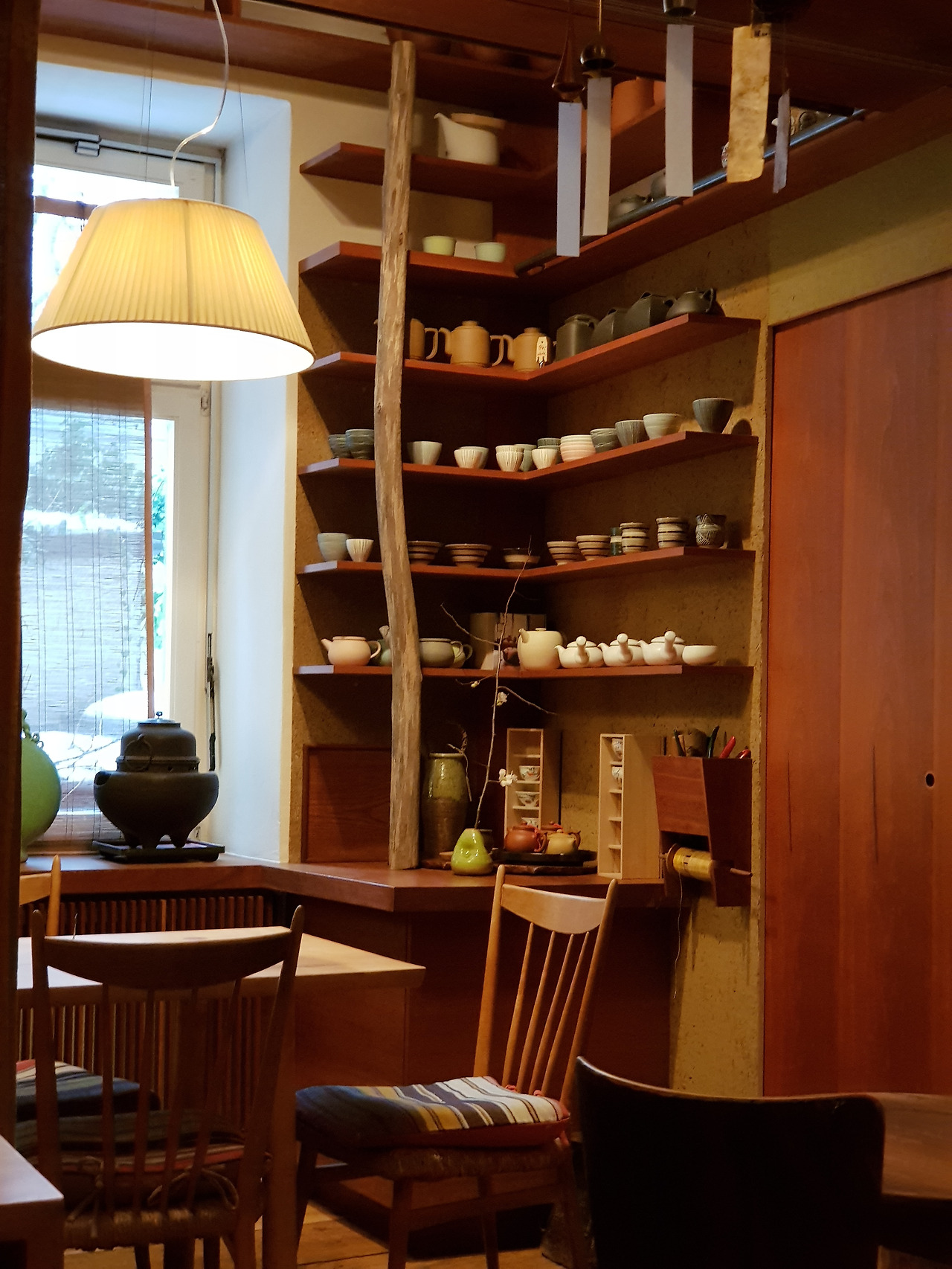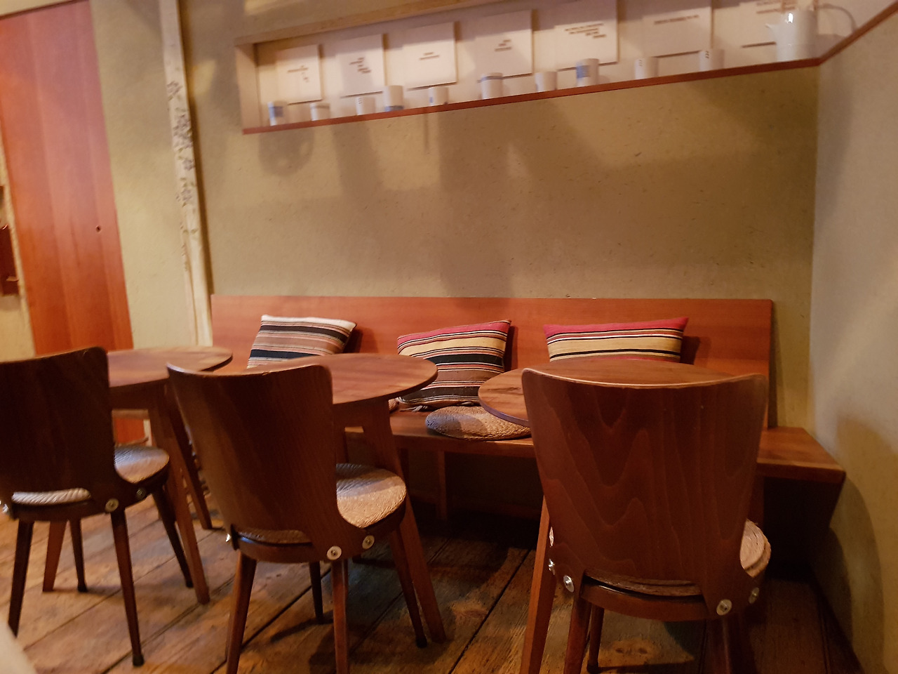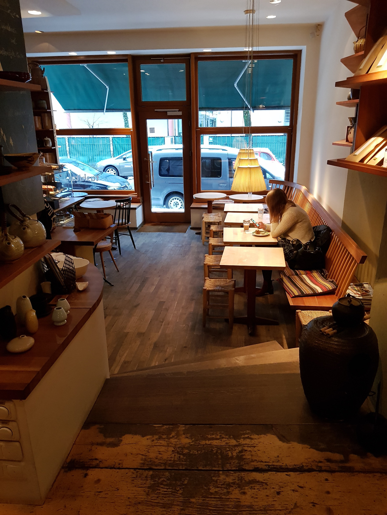 주문을 받던 젊은 여자가 조금 놀라는 눈치. 이건 새로 시작한 메뉴란다. 오호! 작은 보온병에 든 뜨거운 물로 찻잔에 세 번 정도 우려 마실 수 있는 녹차 가격은 4.80유로. 보통 티백차 가격이 3유로 정도. 전체 양은 비슷한데 유기농 차라는 것과 진짜 찻잎을 마실 수 있다는 게 차이다. 차를 마시기에 최적의 분위기는 덤. 주로 나무를 쓴 찻집의 색조와 조명의 톤이 부드럽고 편안하다. 내가 한국 사람이라고 하자 그녀는 반색하며 한국 음식 팬이란다. 여긴 한국 음식 모르는 사람이 태반인데.