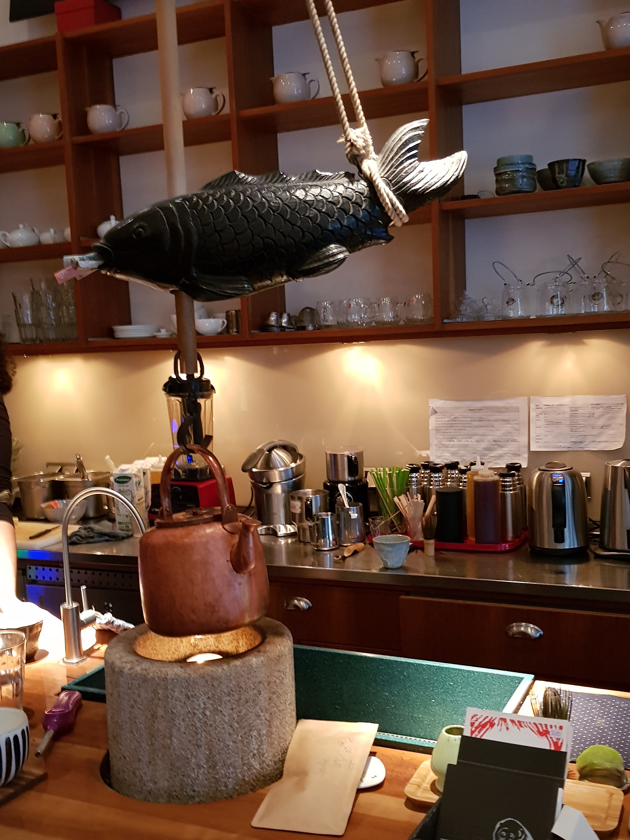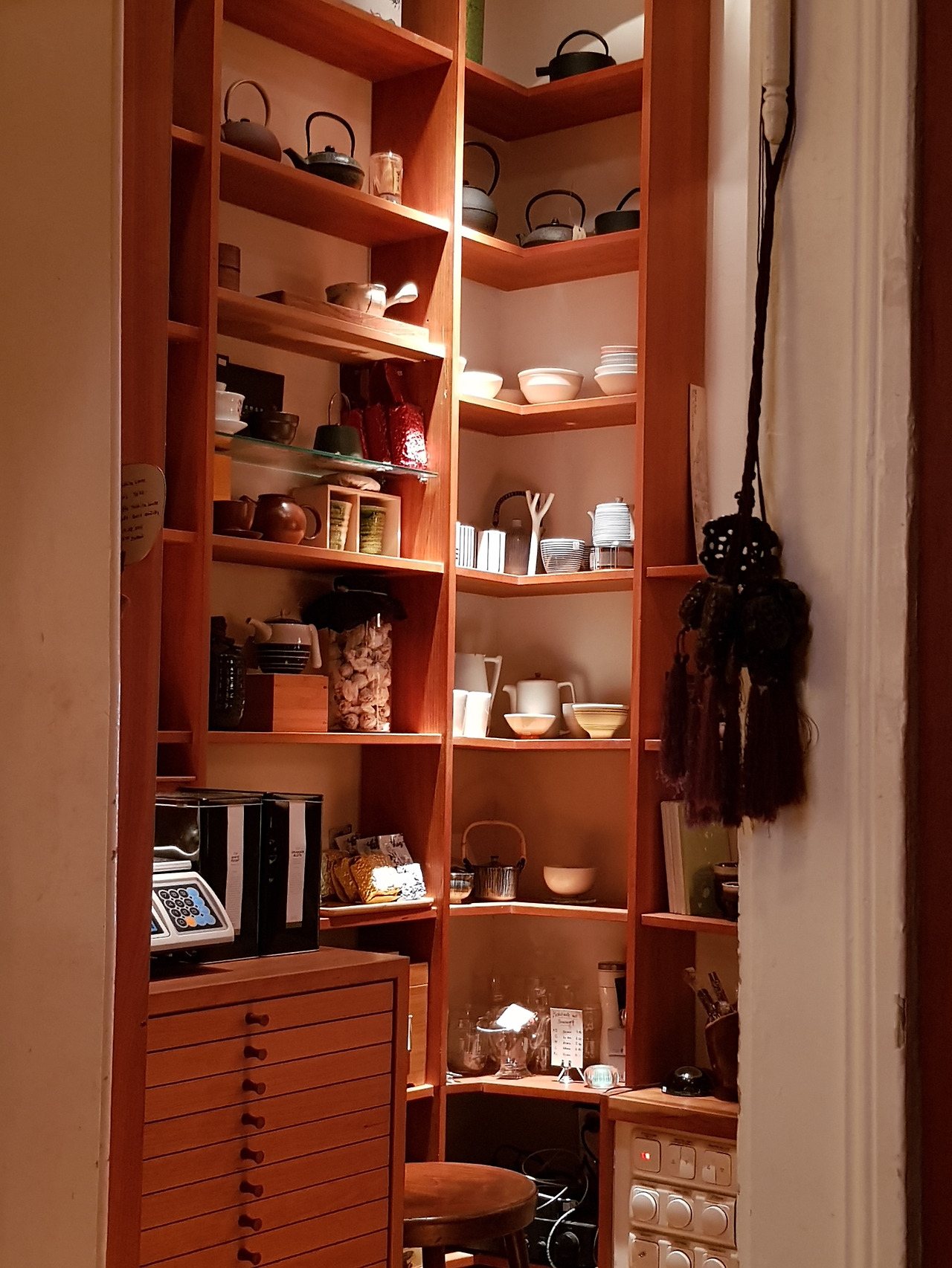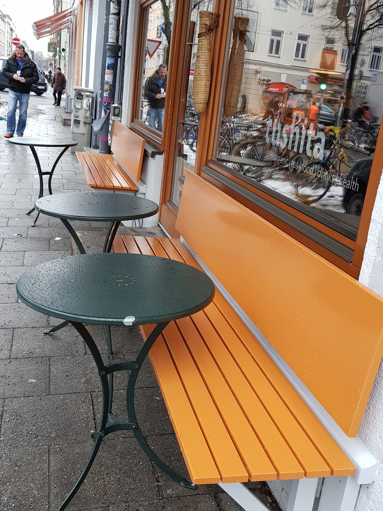주문을 받던 젊은 여자가 조금 놀라는 눈치. 이건 새로 시작한 메뉴란다. 오호! 작은 보온병에 든 뜨거운 물로 찻잔에 세 번 정도 우려 마실 수 있는 녹차 가격은 4.80유로. 보통 티백차 가격이 3유로 정도. 전체 양은 비슷한데 유기농 차라는 것과 진짜 찻잎을 마실 수 있다는 게 차이다. 차를 마시기에 최적의 분위기는 덤. 주로 나무를 쓴 찻집의 색조와 조명의 톤이 부드럽고 편안하다. 내가 한국 사람이라고 하자 그녀는 반색하며 한국 음식 팬이란다. 여긴 한국 음식 모르는 사람이 태반인데.