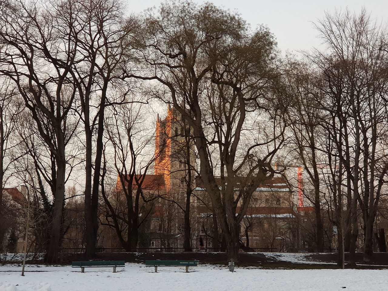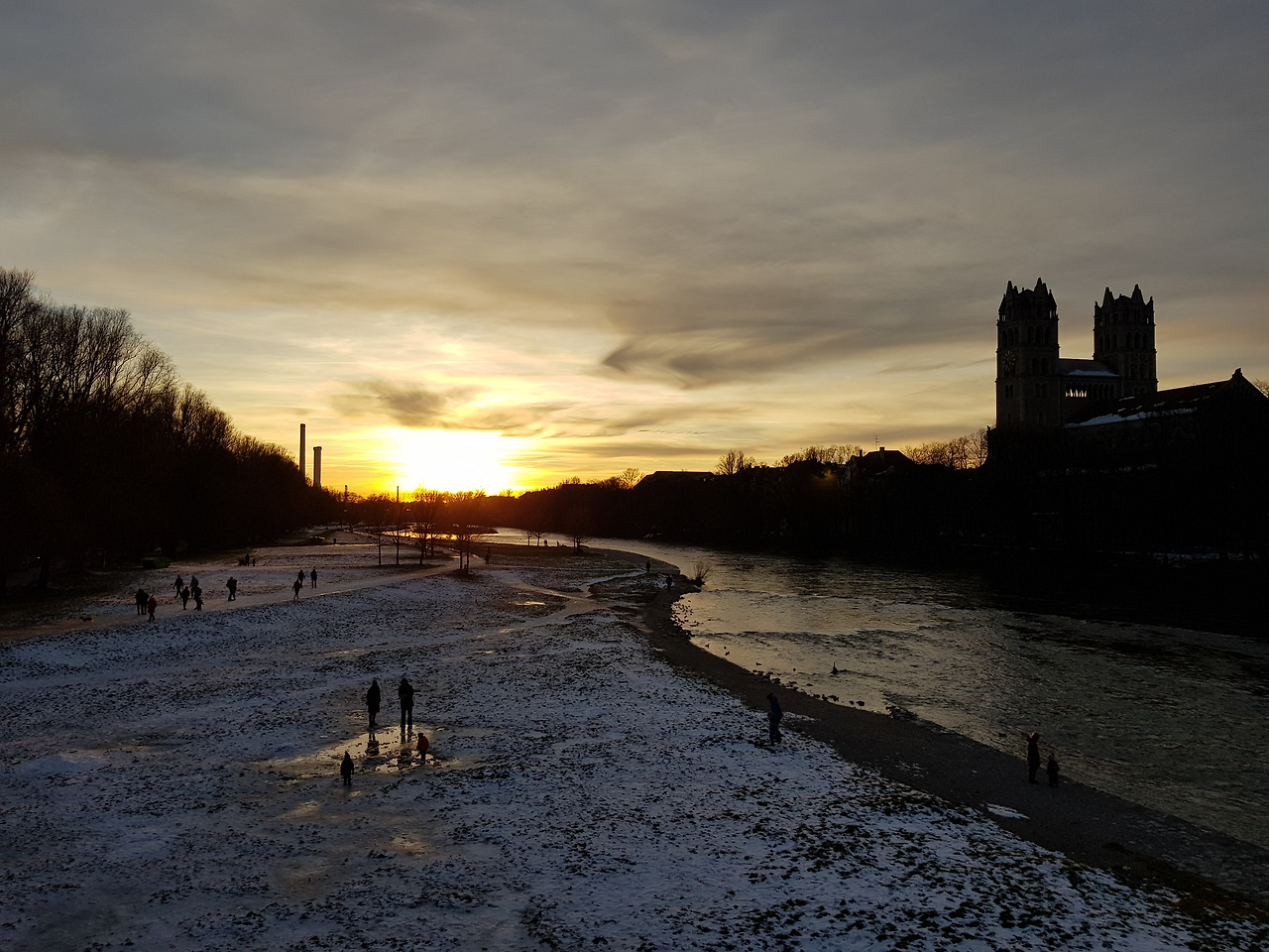 파스텔톤 하늘색과 핑크빛이 하늘을 물들인 아침이었다. 아이의 학교 지각을 면하려고 서둘러 걷느라 그 하늘을 사진으로 담지 못했다. 폰이 백팩 안에 들어 있었던 탓도 크다. 후회막급. 이런 하늘을 이 겨울에 몇 번이나 더 본다고. 어제보다 더 예쁜 하늘. 어제 아침부터 날이 개었다. 눈이 다 녹는다며 아이는 조바심을 냈다. 어제는 학교를 마친 아이의 무거운 가방을 어깨에 메고 동선을 길게 잡고 걸었다. 한겨울 늦은 오후의 햇살이 따뜻했다. 이자르강 다리도 건넜다. 강물에 비친 석양이 장관이었다. 아직도 눈이 가득한 강변 공원에서는 한참을 머물렀다. 눈 위를 걷자 낙엽 위를 걷던 지난가을이 생각났다.