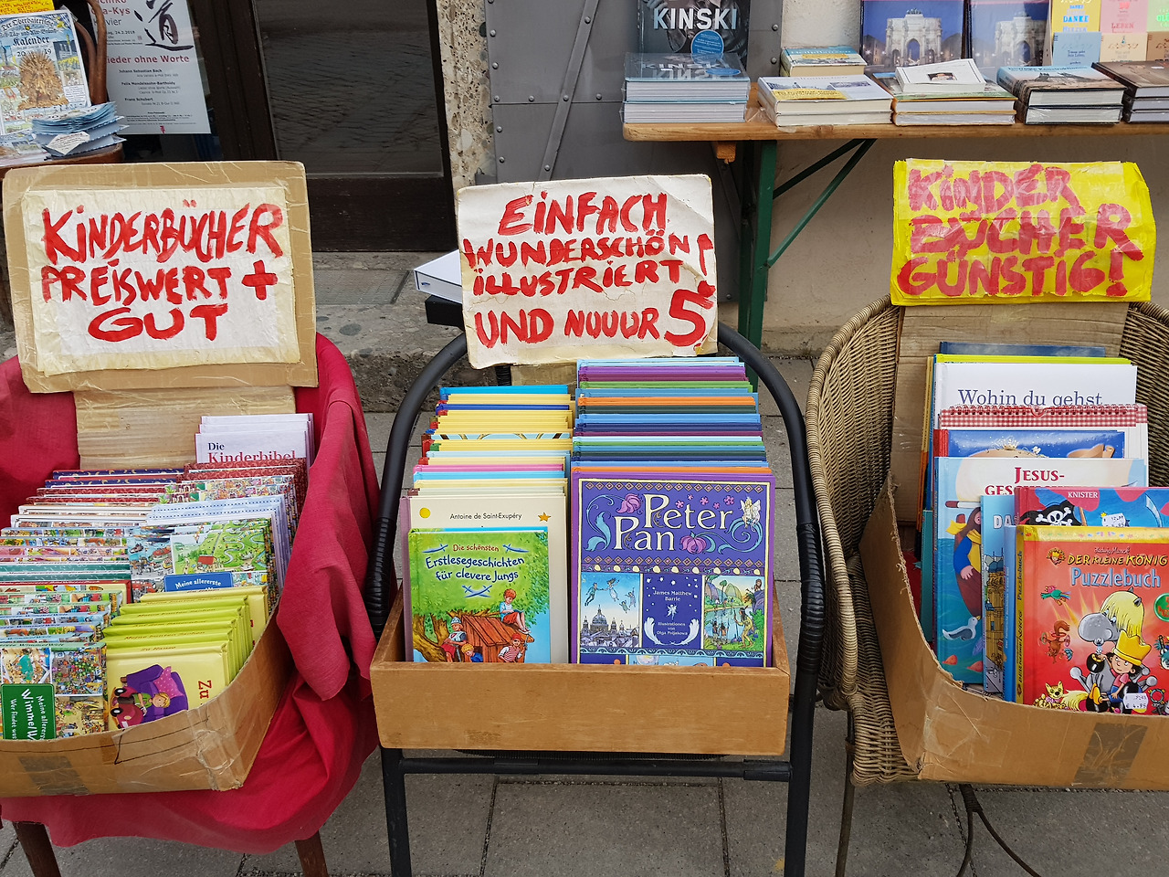 독일의 벼룩시장은 일상생활에 깊이 침투해 있다. 아이들은 벼룩시장과 함께 자란다고 해도 과언이 아니다. 외국인인 내 눈에는 그렇게 보인다는 뜻이다. 그만큼 가까이 있다. 학교는 물론이고, 봄이면 동네별로 벼룩시장이 열린다. 교과서는 학년별로 대물림되는지 이전 사용한 학생들의 이름이 순서대로 적혀 있다. 아이도 이것을 당연하게 받아들이고 깨끗하게 사용하려고 노력한다.