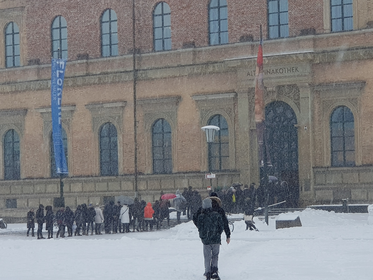 그날은 전시회 마지막 날인 2월의 첫째 주 일요일이었다. 아침부터 눈이 펑펑 내렸다. 조카와 아이는 무슨 꿍꿍이 속인지 내가 집 비울 시간만 손꼽아 기다렸다. 뭘 하느라 늦어졌는지 모르겠다. 아이에게 떠밀리다시피 집을 나선 게 오후 4시였다. 그날은 뮌헨에 나 같은 사람이 많았던 모양이다. 눈 오는 일요일 오후 알테 피나코텍은 사람들로 넘쳤다. 건물 밖의 대기 줄은 길었고, 육중한 출입문은 닫혀 있었다. 관람 인원을 제한하는 모양이었다. 그 와중에 담당자들이 밖으로 나와 어린이 동반자와 노약자들을 우선 입장시키는 풍경은 흐뭇했다.