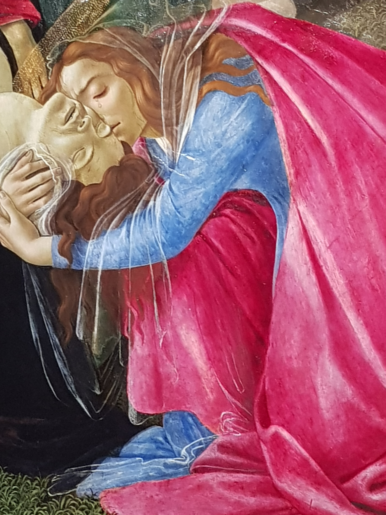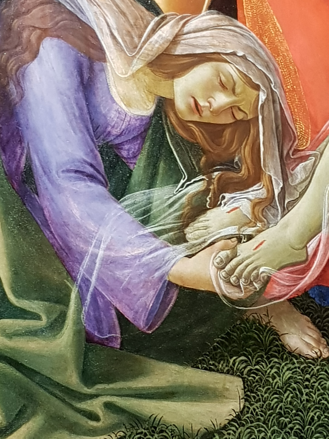 그럼 뭘 더 해야 하냐고? 예를 들면 이런 것들 말이다. 산드로 보티첼리 Sandro Botticelli (1444/45-1510)의 <그리스도의 죽음을 애도함 The Lamentation> 같은 그림 앞에 오래 서 있는 것. 그날의 주인공은 내게는 단연 보티첼리였다. 어딜 가나 사람들로 겹겹이 둘러싸여 맘 놓고 그림을 감상하기도 힘들었던 그날. 그럼에도 저 여인들 앞을 떠나기가 어려웠다. 저 그림을 못 만났더라면 그날은 피곤하게 힘만 뺀 미술관 관람으로 끝났을지 모르겠다.