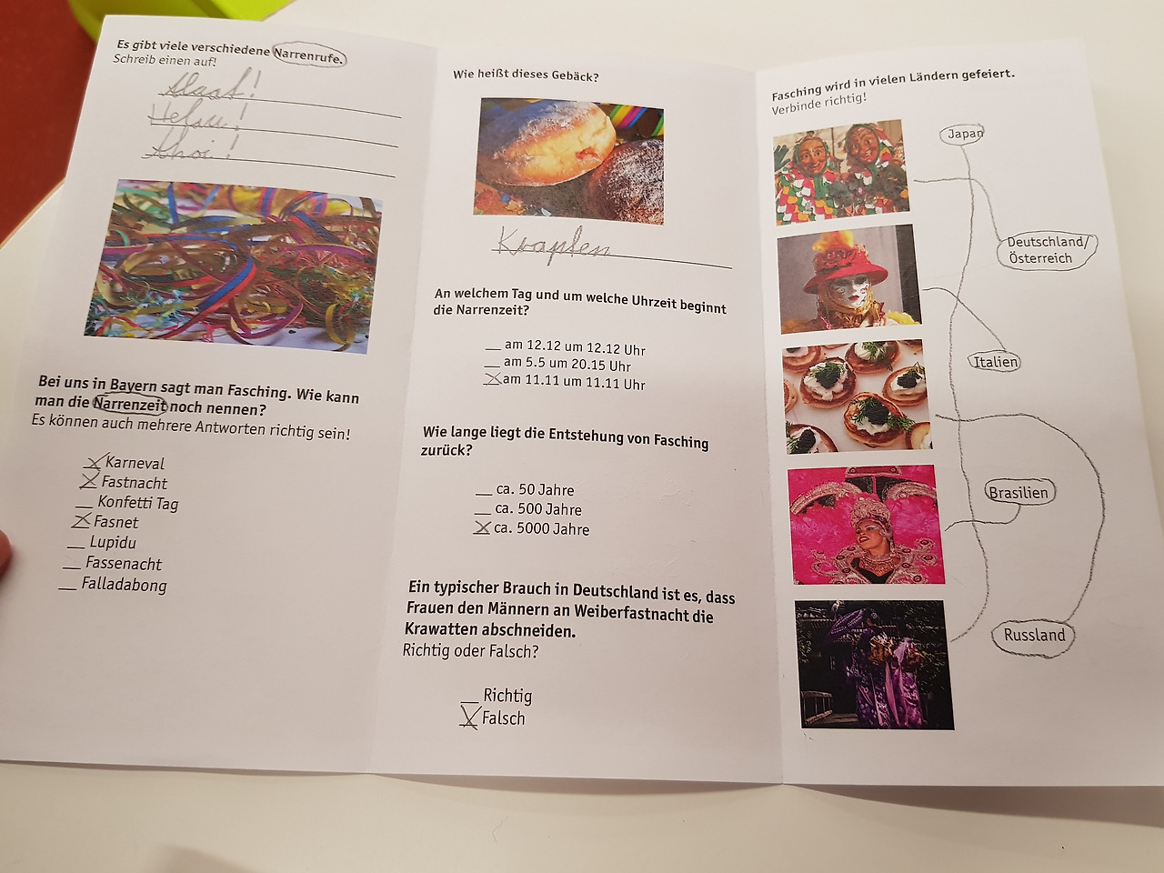 2월의 퀴즈는 카니발이었다. 독일의 카니발은 파싱 Fasching이라고 부른다. 보통 2월인데 올해는 좀 늦은 3/5(화). 3월 첫째 주인 파싱 방학은 1주일이다. 아이는 작년에 산 해적 코스튬을 한번 더 입어주시겠단다. 고맙기도 해라! 대신 앵무새가 필요하다나? 어떤 부모들은 아이들의 파싱 코스튬을 직접 만들기도 한다. 율리아나 엄마가 그랬다. 예사 솜씨가 아니었다. 파싱 때 아이는 스키도 타러 간다. 우리 반 학부모들이 스키 학교와 연계해 참석자를 모집했다. 3박 4일. 제법 길다. 다행히 율리아나도 참가한다고 둘이서 좋아했다. 아이는 중급반. 율리아나는 초급반. 참가비는 320유로 정도.