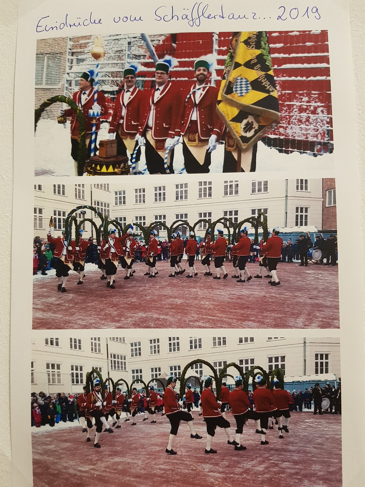 시청사 시계 아래 2단으로 구성된 인형들이 쉐플러 탄츠 Schäfflertanz라는 춤을 추는데 그중 아랫단인 파란 옷을 입은 인형들이 그들이다. 아이의 설명에 의하면 예전에 페스트가 창궐할 때 언제 전염병이 물러갈지 몰라 사람들이 감히 집 밖으로 나갈 엄두를 못 낼 때 그들이 노래하고 춤추는 소리를 듣고서야 안심하고 밖으로 나왔다고 한다. 여름에는 오후에도 이벤트를 볼 수 있다. 이번 주에 학부모 단톡 방에 올라온 게 바로 그 사진이었구나! 그 댄스 단체가 아이 학교 운동장에 들러 깜짝 이벤트를 한 모양이다.