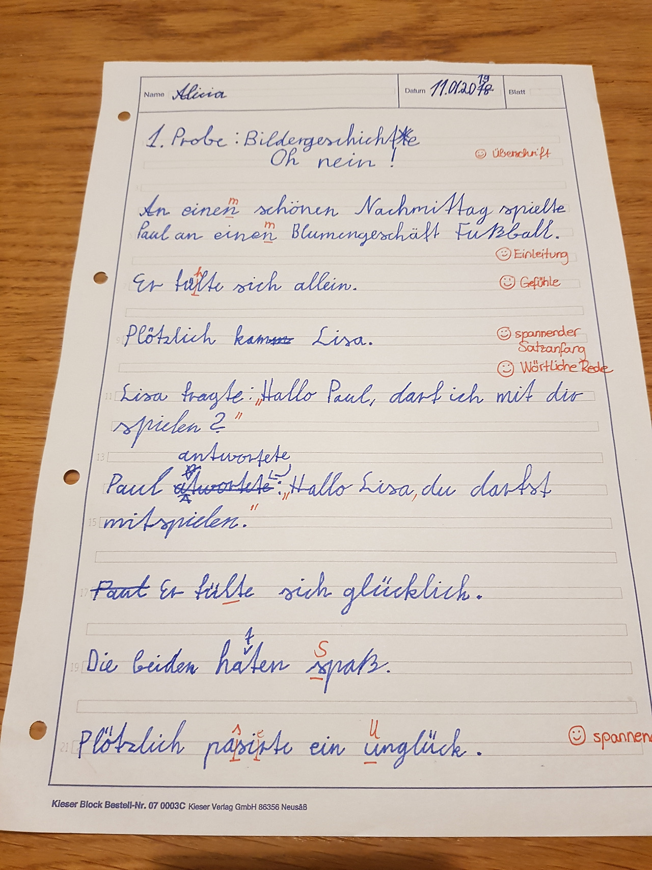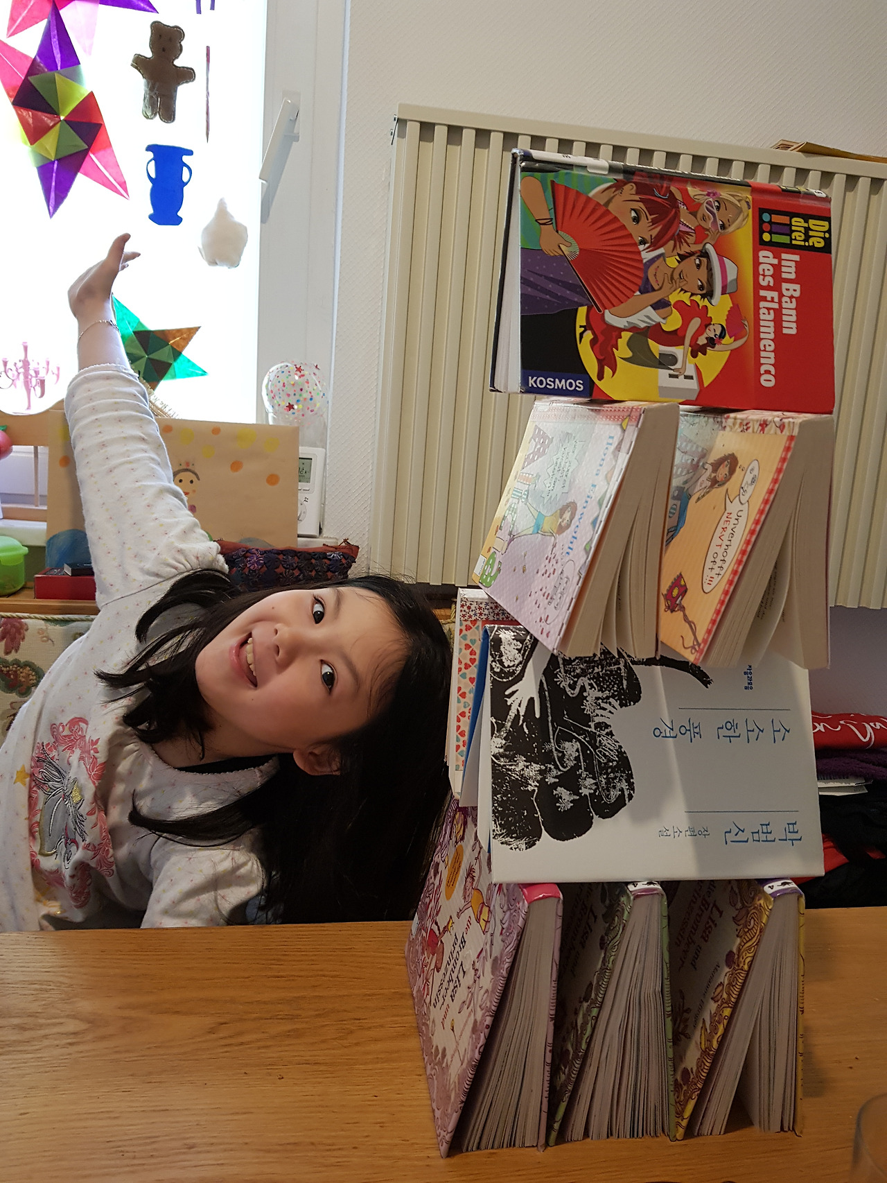 당시 나는 아이가 독일어를 제대로 읽고 쓰는 게 부족하다 여기고 걱정이 많았다. 매년 봄에 열리는 독일어 수행 평가에서 아이는 최하위 성적표를 받았다. 독일의 학제로 보면 매 학년 2학기에 열리는 평가였다. 오죽하면 보조 선생님이 우리 반 독일 아이 엄마였는데 나를 따로 불러 알리시아의 독일어에 조금 더 신경을 써야 할 것 같다고 충고를 했겠는가.