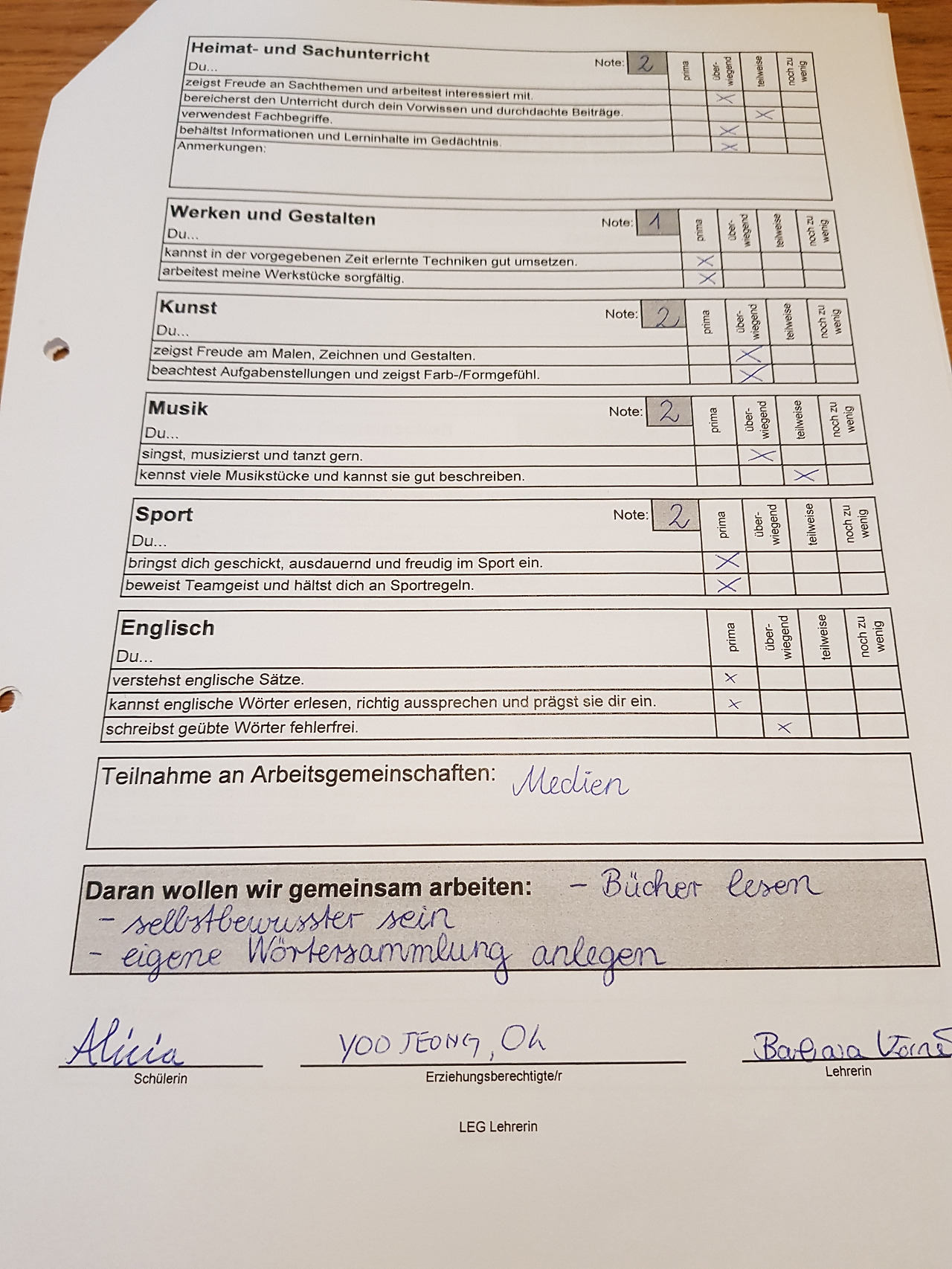 2월 중순에 아이는 학교에서 1학기 성적표를 받았다. 학부모 상담을 한 지 1주일이 지난 후였다. 담임샘과 상담하던 그날 우리 다음이었던 율리아나 엄마는 상담 시간 30분을 넘기고도 무려 10분인가 더 시간을 끌었단다. 나중에 율리아나 할머니께 들은 바에 의하면. 아무리 기다려도 딸이 안 나오더라나. 무슨 얘기가 그렇게 길었는지 아직 물어보진 못했다.