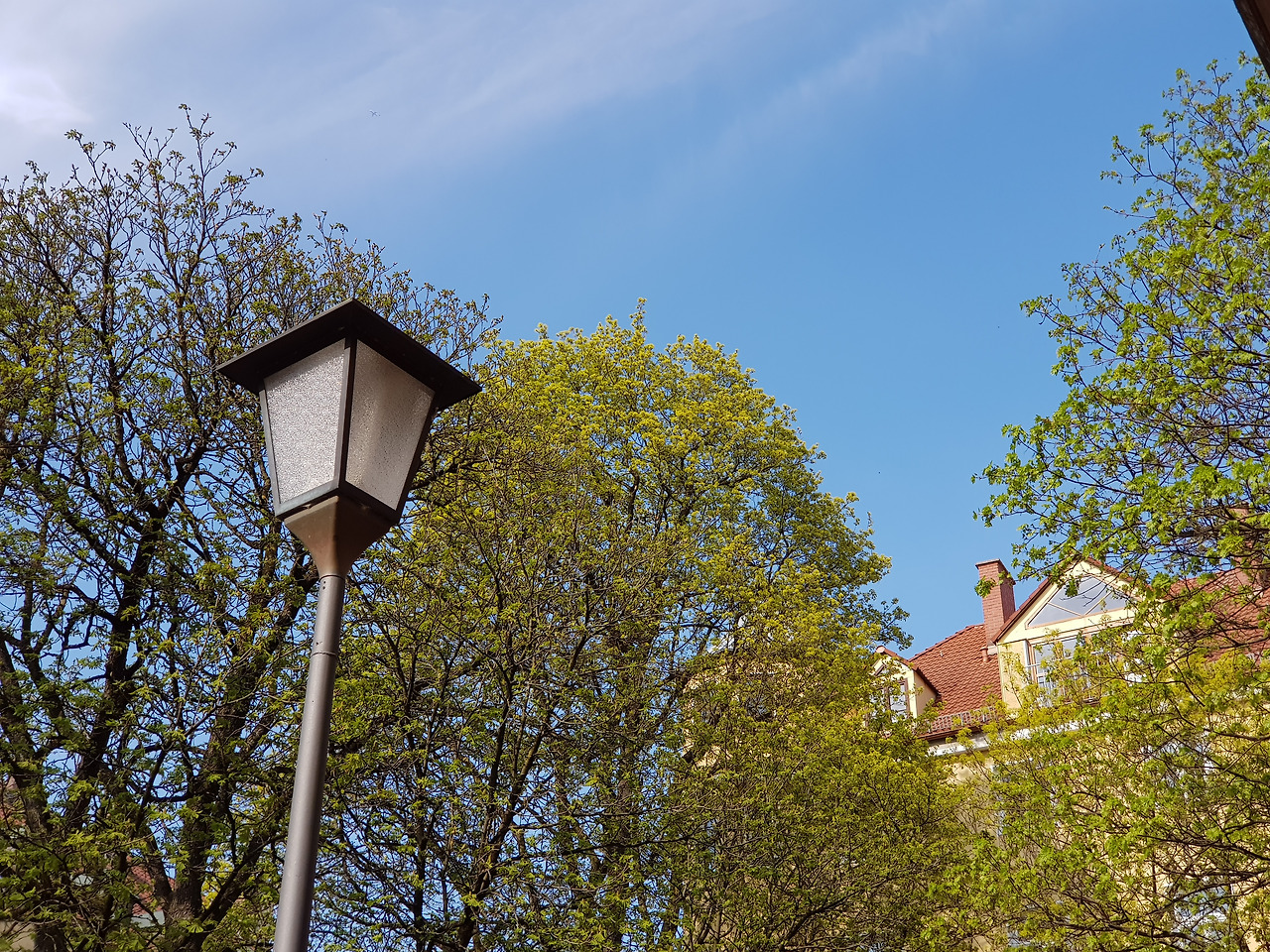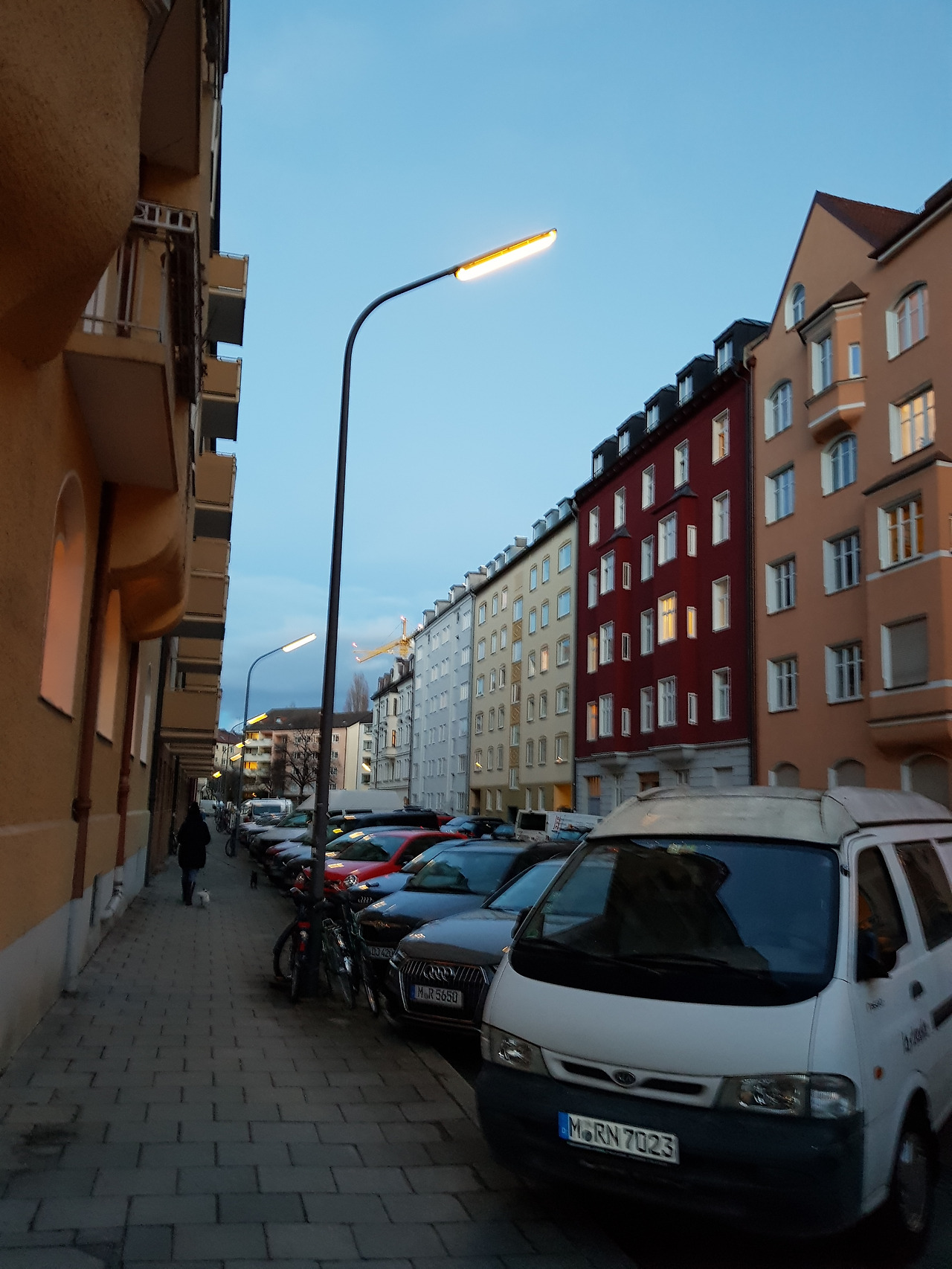 뮌헨의 지하철 우반역에서 우리 집으로 가는 길은 두 갈래길이다. 헬레나 빵집 오른쪽 길. 약국 아포테케를 중심으로 왼쪽 길. 오른쪽은 에데카 Edeka라는 슈퍼마켓과 유기농 가게가 있다. 어느 날 슈퍼 앞길에서 가로등이 길 한가운데에 달려 있는 걸 발견했을 때의 놀라움이라니! 트람이 아닌 가로등이 말이다. 그것도 1년 내내 지나다니면서 못 봤다는 게 말이 되는가. 독일에서 자주 볼 수 있는 가스등 모양의 가로등도 예쁘다.