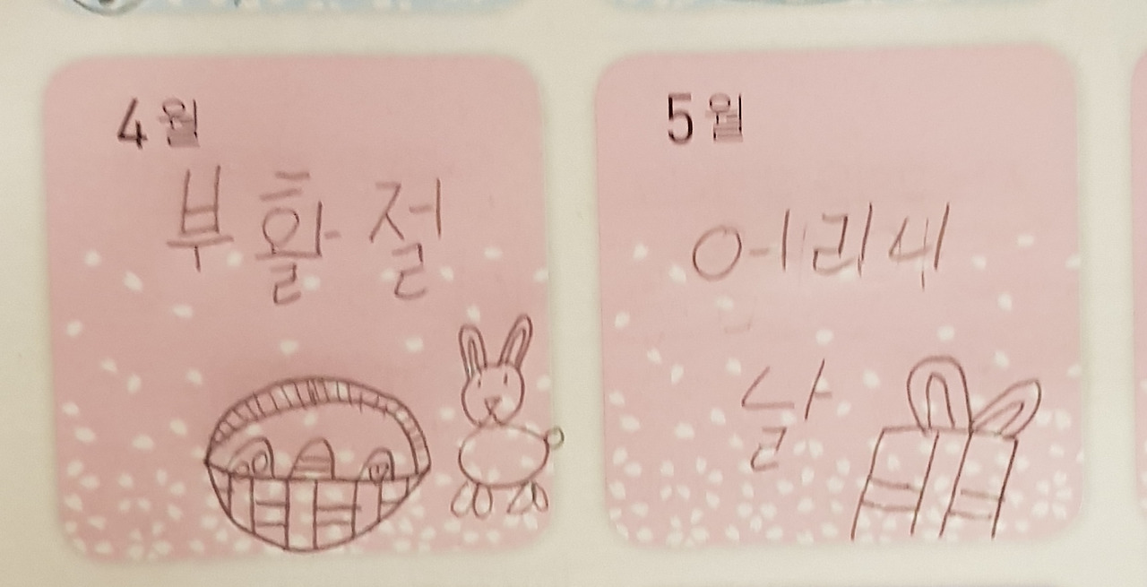 아이가 작성한 달력(아래). 4월과 5월은 알겠다. 그럼 9월은 무슨 뜻?