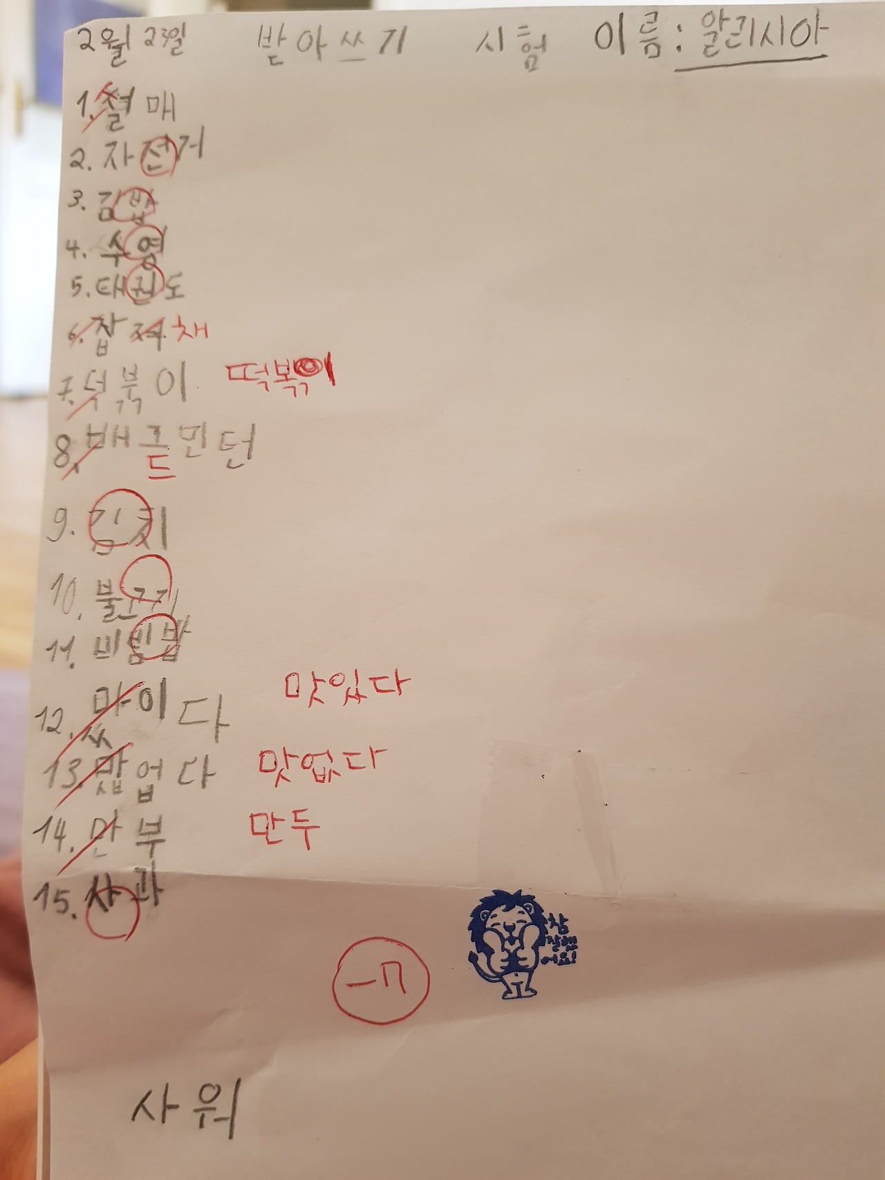 그건 그렇고, 한글학교에서 아이가 받아쓰기를 했다. 이 받아쓰기는 도대체 뭔가. 열 다섯 문제 중에 겨우 절반을 맞췄다. 그런데도 듣도 보도 못한 '덕붂이' 라는 글자가 던지는 예상을 뒤엎는 즐거움 때문에 야단도 못 쳤다. 쌍벽을 이루는 '맜이다'와 '맛업다'도 마찬가지. 거기다 아이는 자기가 반 이상을 맞췄다며 얼마나 기뻐하던지. 이게 그토록 기뻐할 일인지 잠시 헷갈려서 타이밍을 놓친 것. 자긍심이 충만한 걸로 해석해야겠다. 아무려나 어떤가. 이 봄에 엄마도 아이도 단짝이 생길지 모르는데.